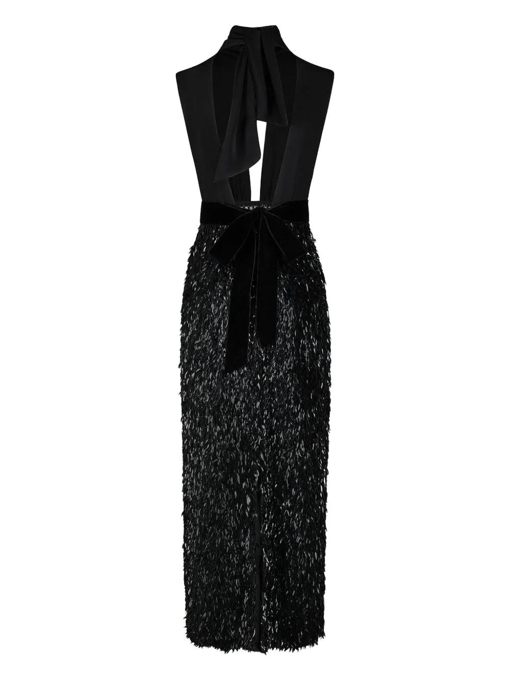 black keyhole neck sleeveless velvet waistband crystal embellishment