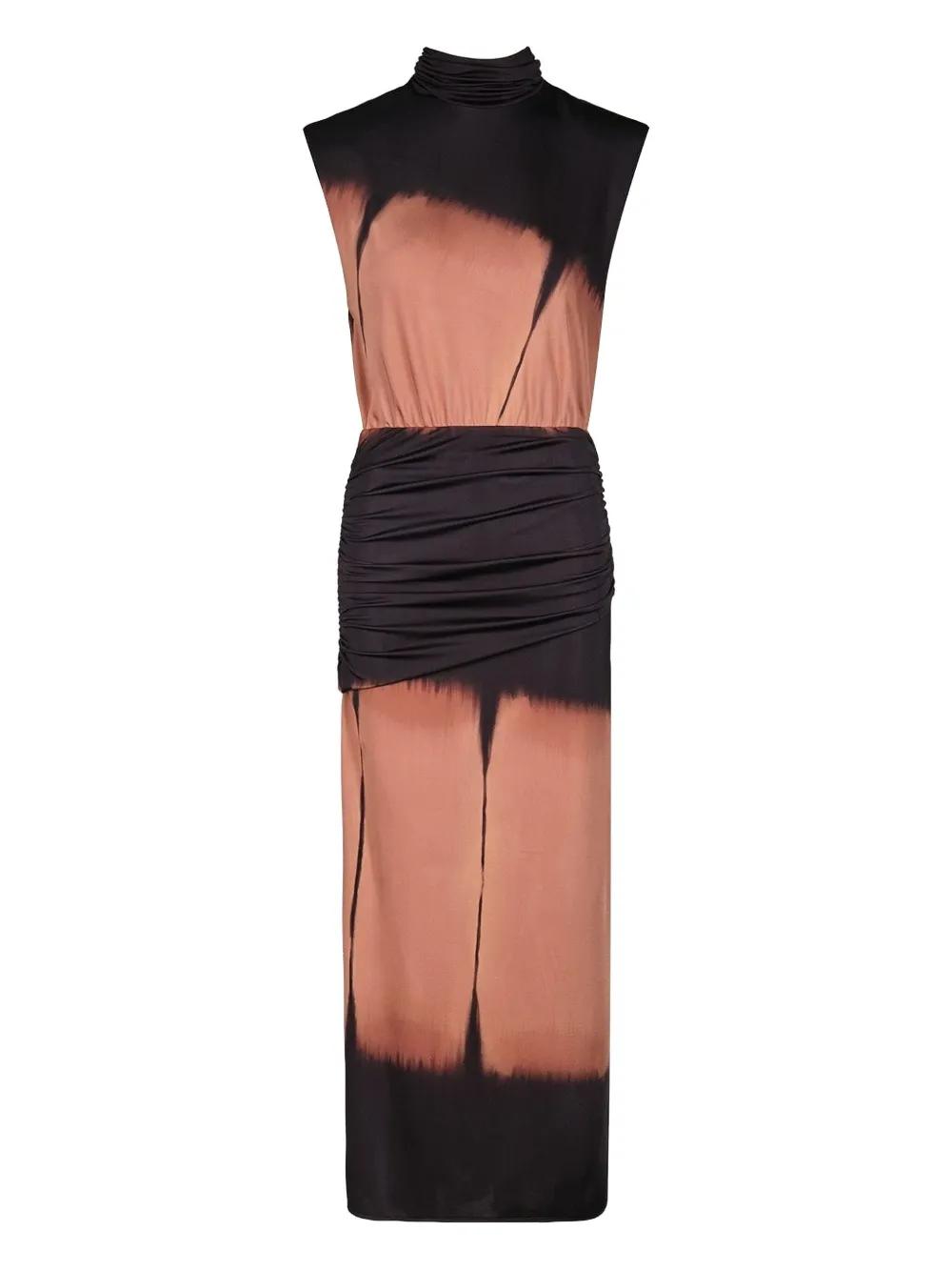 black tie dye pattern high neck sleeveless gathered waist padded shoulders