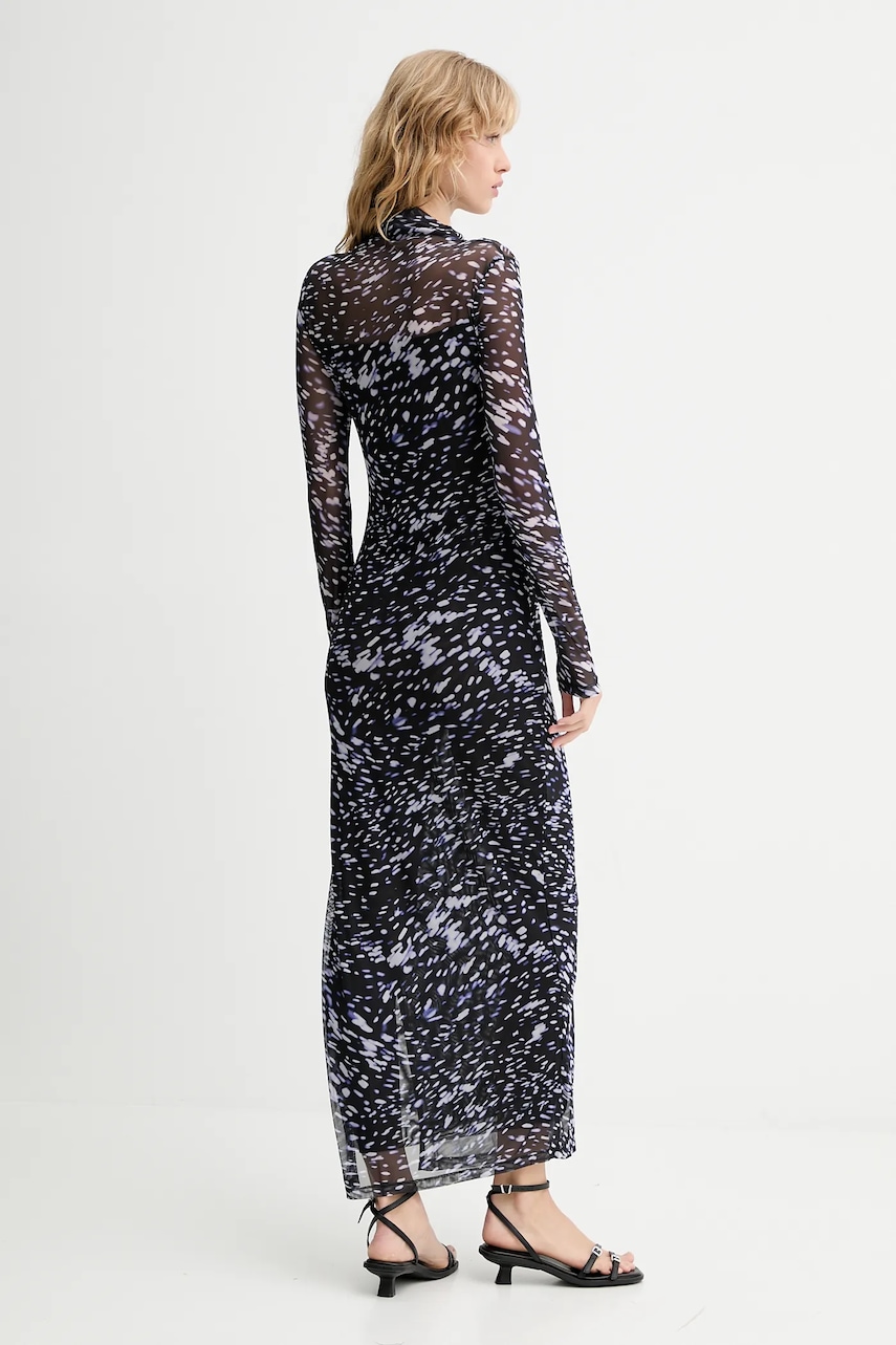 - Ten produkt został częściowo uszyty z poliestru pochodzącego z recyklingu. - Dopasowany, podkreślający sylwetkę fason. - Model z półgolfem. - Model na podszewce. - Cienka, elastyczna dzianina. - Długość rękawa: 62 cm. - Długość: 142 cm. - Szerokość pod pachami: 38 cm. - Wymiary podane dla rozmiaru: S.