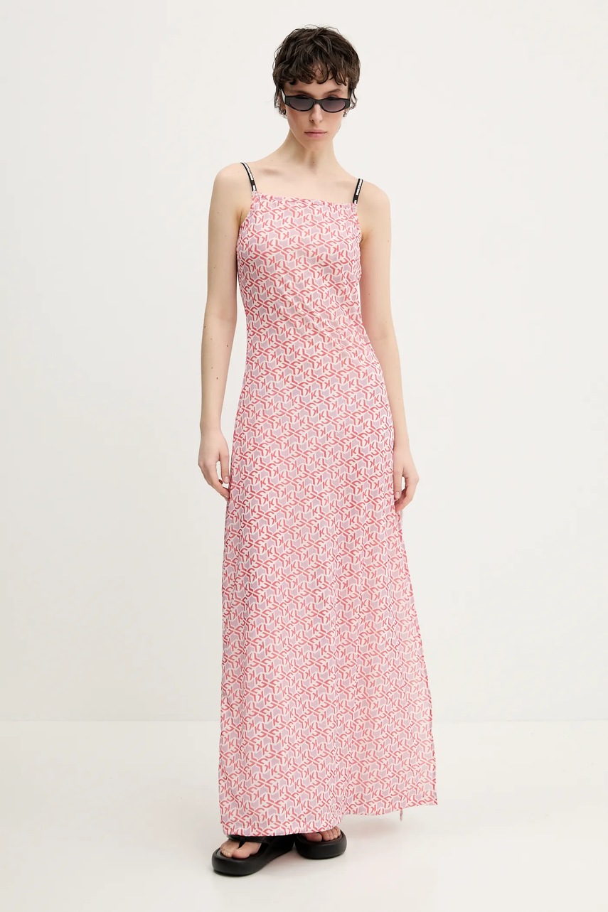 Karl Lagerfeld Jeans sukienka kolor różowy maxi rozkloszowana A2W13029