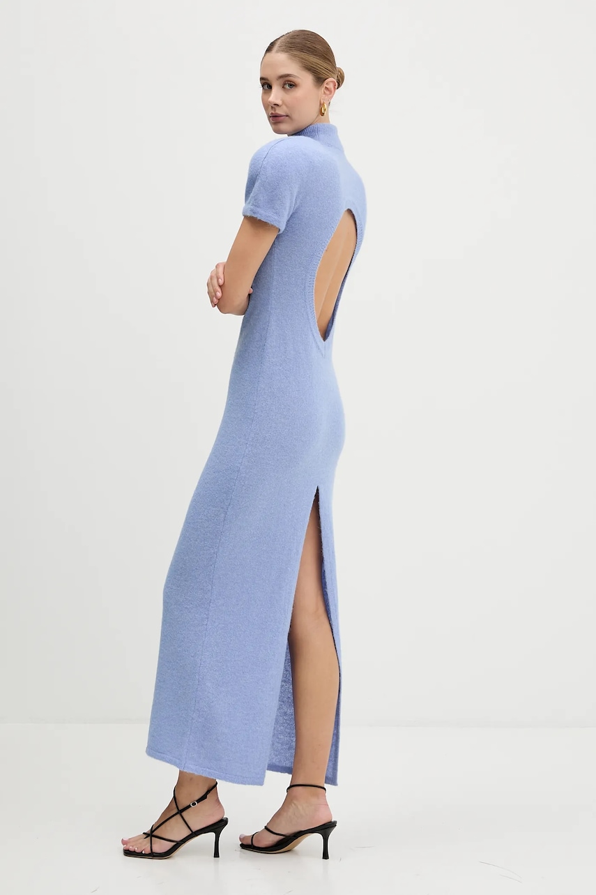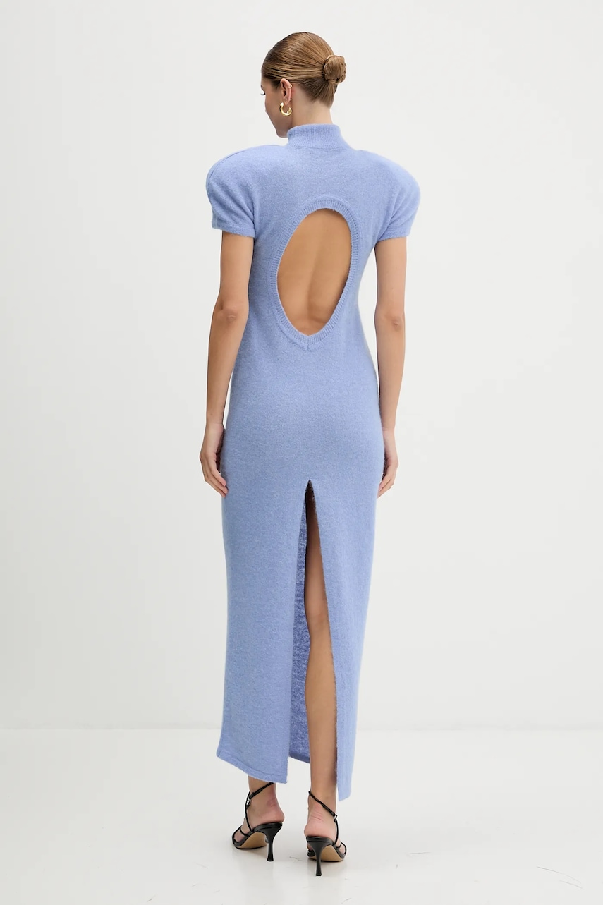La Mania sukienka z dodatkiem wełny NOIR kolor niebieski maxi dopasowana NOIR