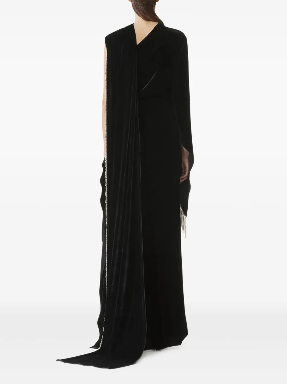 black draped design embellishment one shoulder asymmetric hem long sleeve