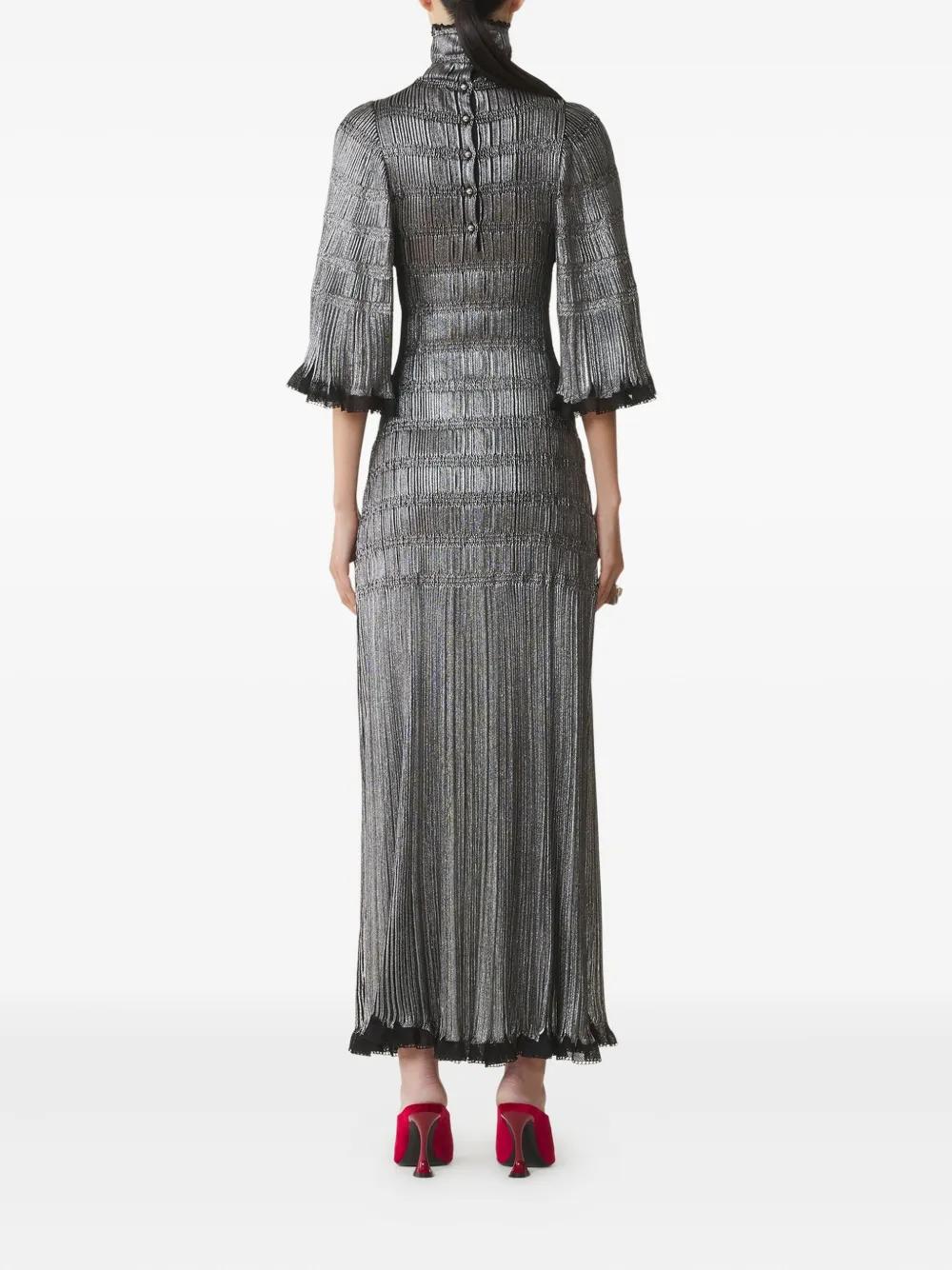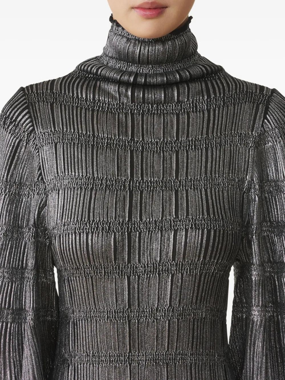 - Dopasowana góra i rozkloszowany dół. - Model z półgolfem. - Model wykonany z dzianiny prążkowanej. - Materiał z ozdobnymi przeszyciami. - Długość: 148 cm. - Szerokość pod pachami: 35 cm. - Szerokość w talii: 32 cm. - Szerokość w biodrach: 35 cm. - Wymiary podane dla rozmiaru: S.
