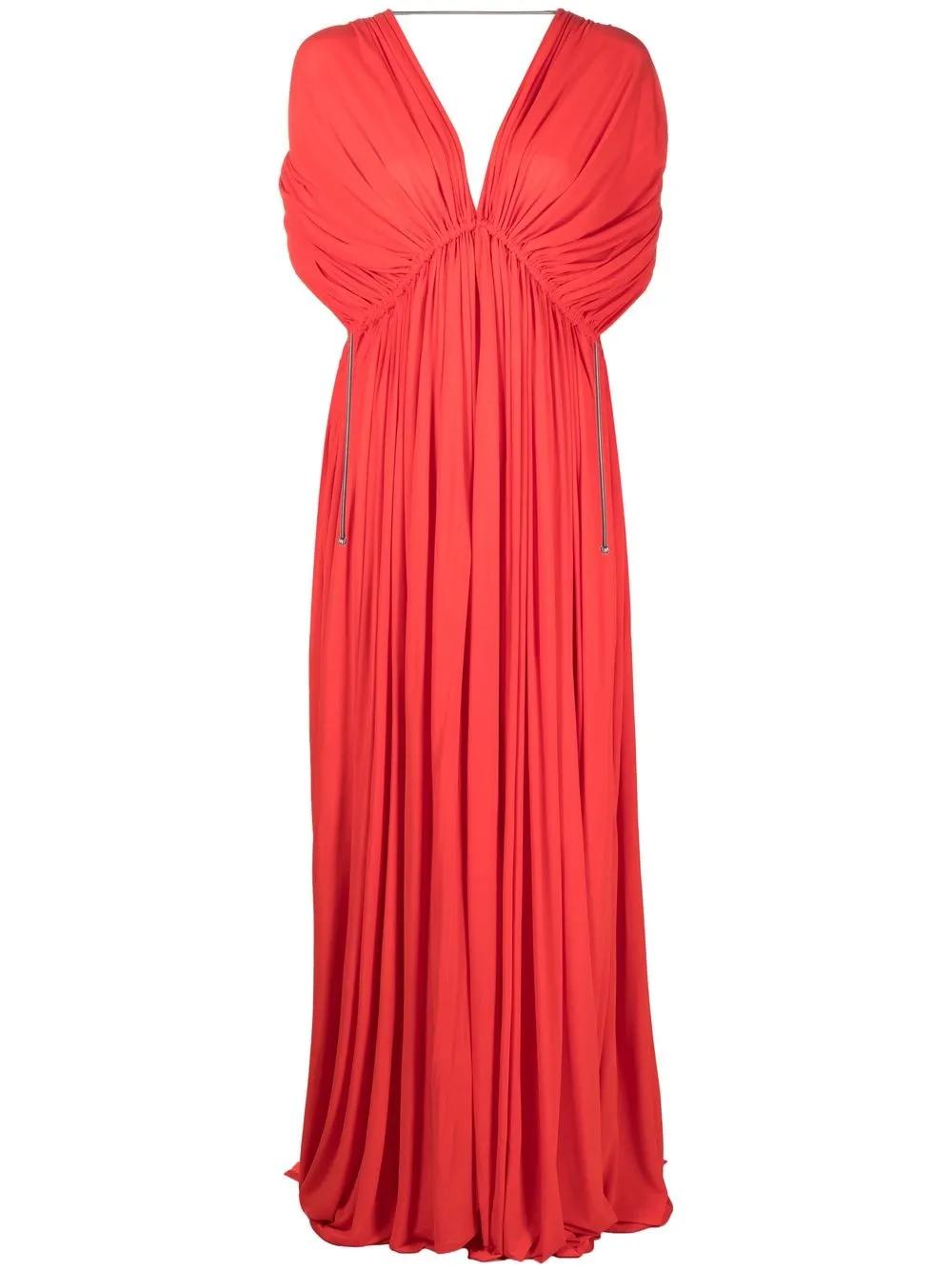Lanvin V-neck pleated gown - Red