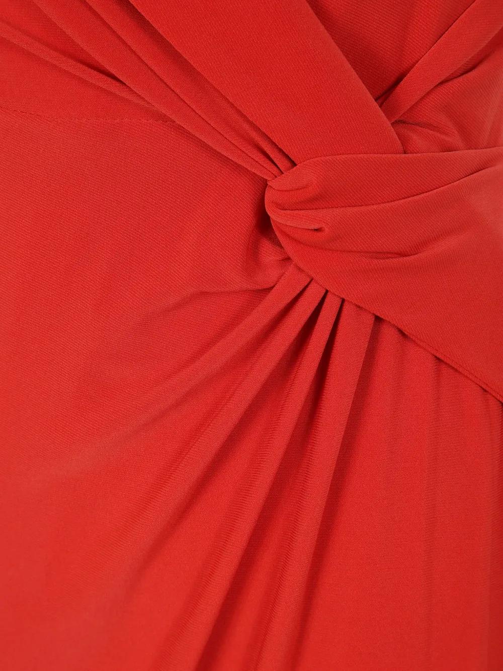 bright vermillion maxi length knot detail V-neckline short sleeves