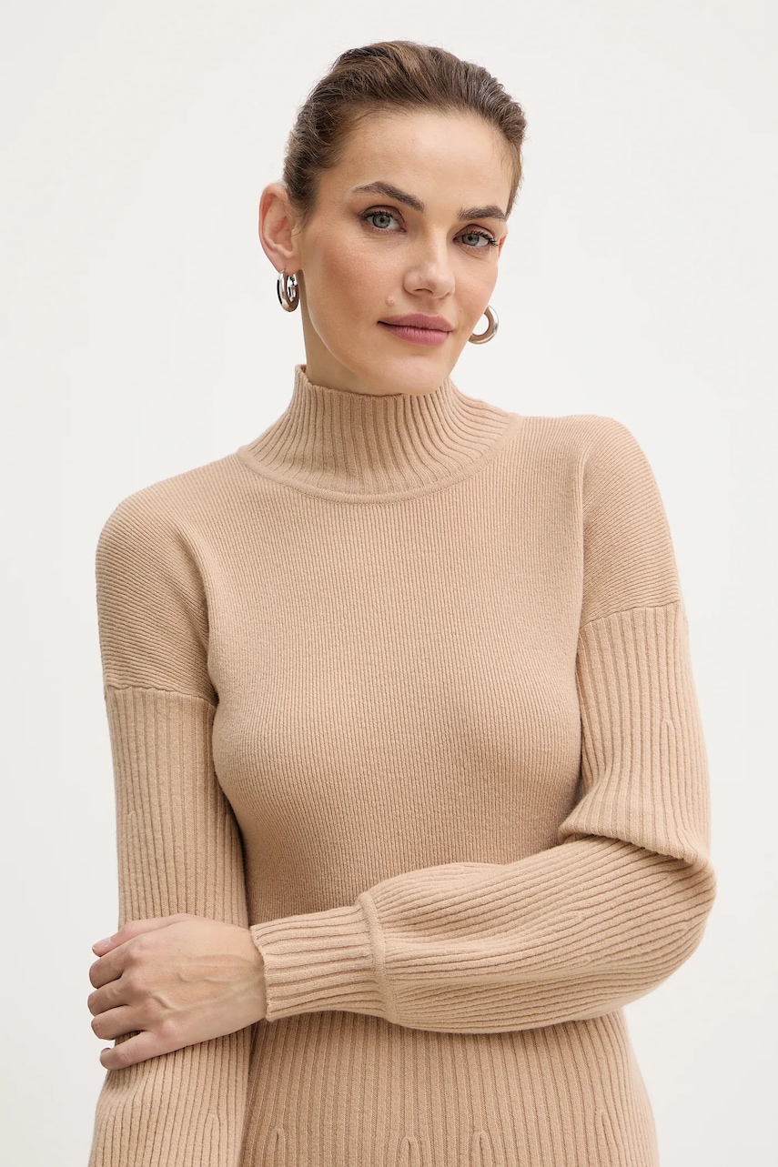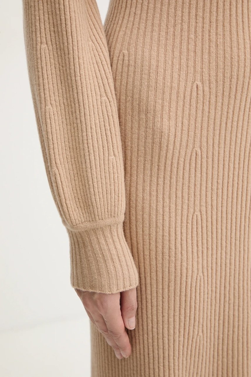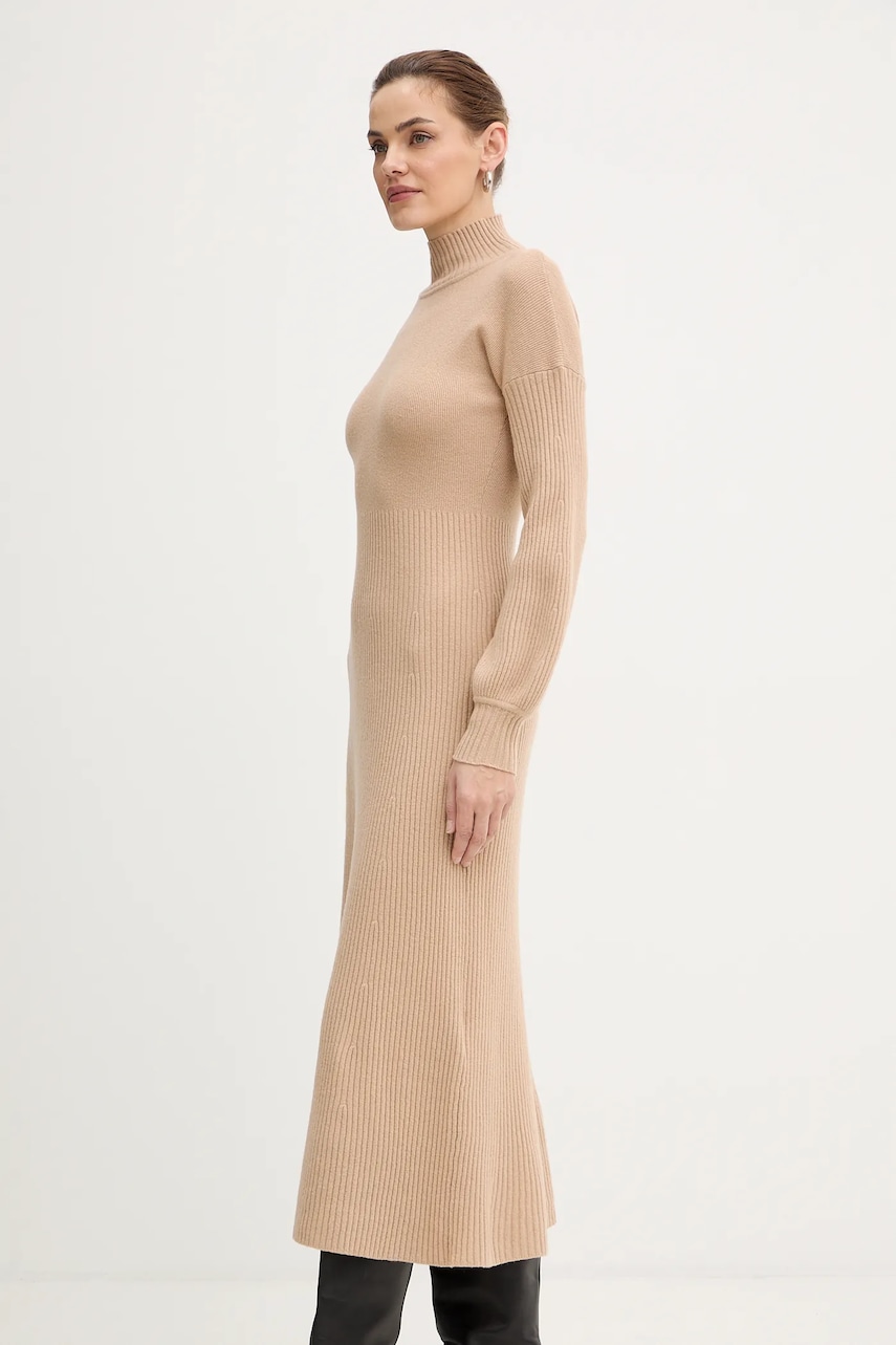Luisa Spagnoli sukienka wełniana kolor beżowy maxi dopasowana 100209