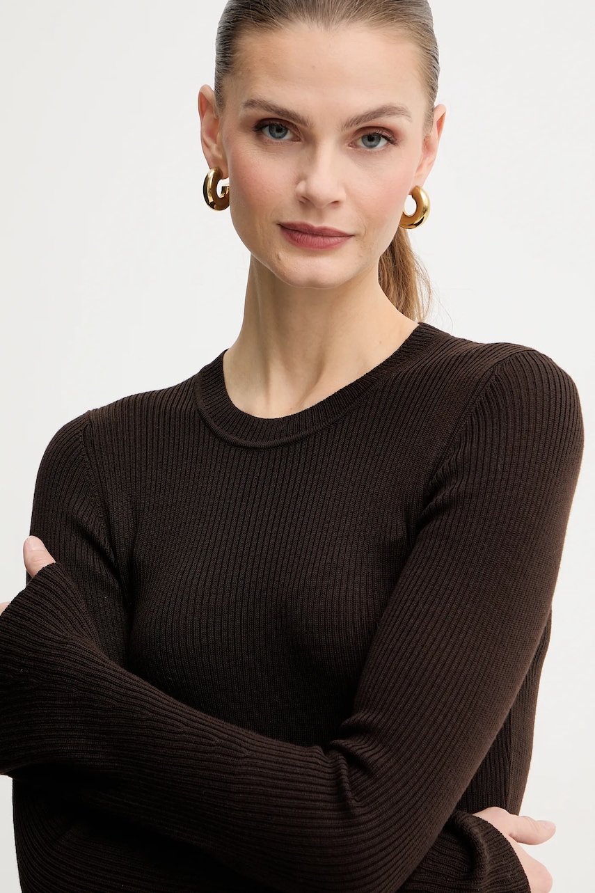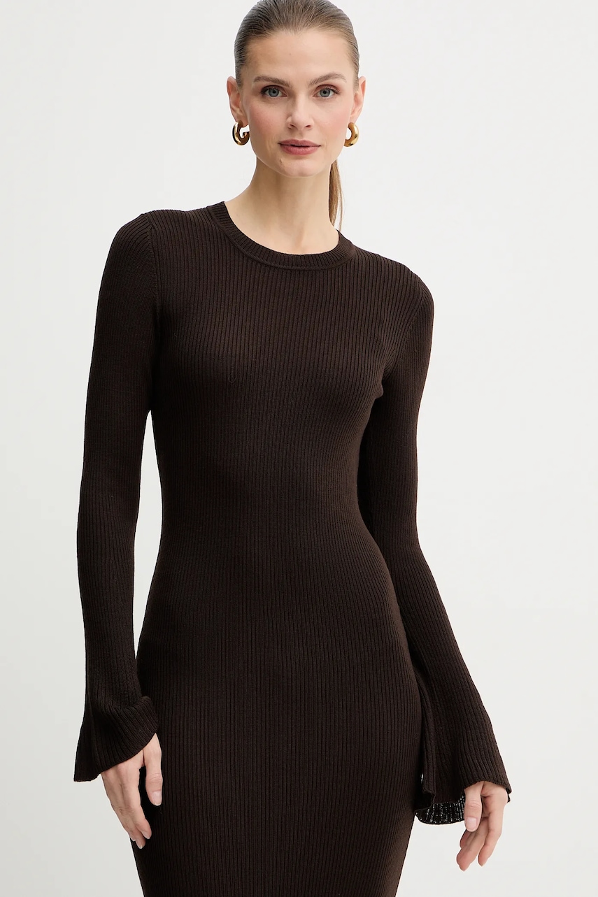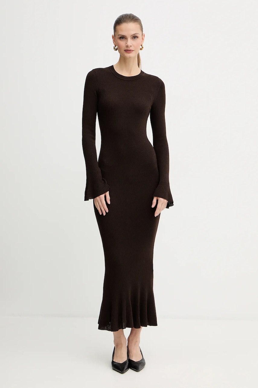 Luisa Spagnoli sukienka wełniana kolor brązowy maxi dopasowana 100225