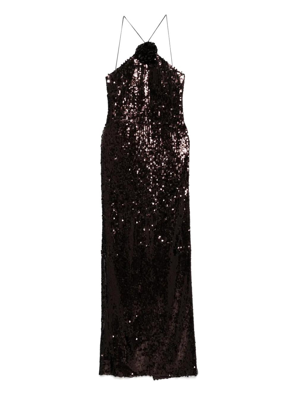 brown sequin embellishment halterneck sleeveless floor-length skirt