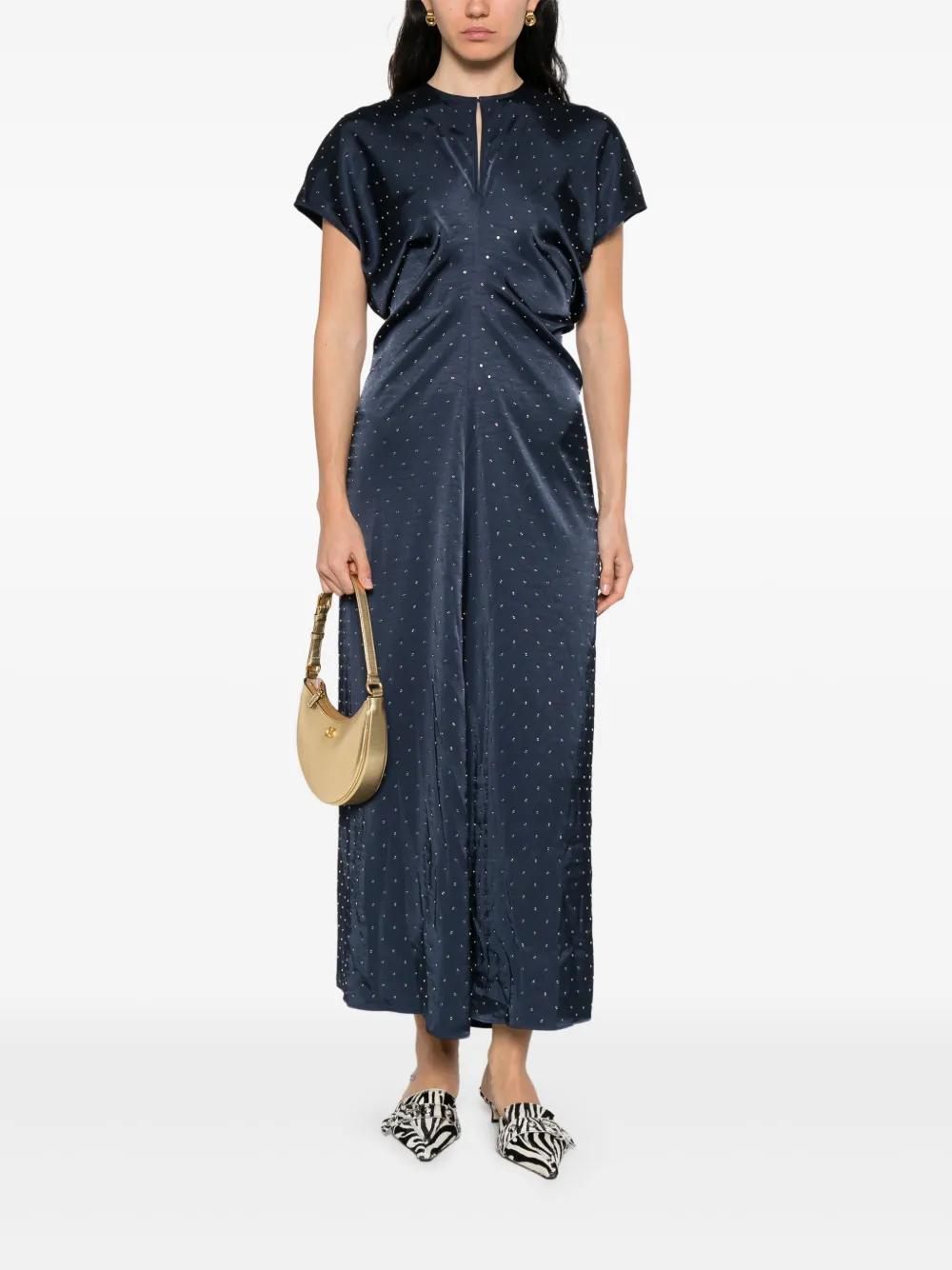 navy blue rear zip fastening short sleeves front slit eyelet detailing
