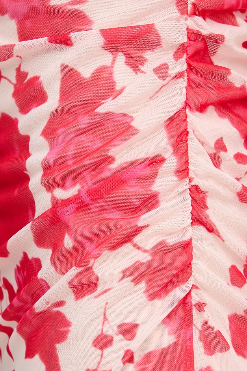 - Dopasowany, podkreślający sylwetkę fason. - Dodatkowa warstwa materiału w postaci podszewki. - Klasyczny, okrągły dekolt. - Nieregulowane ramiączka nie zsuwają się z ramion zapewniając komfort podczas aktywności. - Model z ozdobnymi marszczeniami. - Wzorzysta dzianina. - Model bez zapięcia. - Długość: 40 cm. - Szerokość pod pachami: 135 cm. - Wymiary podane dla rozmiaru: 36.