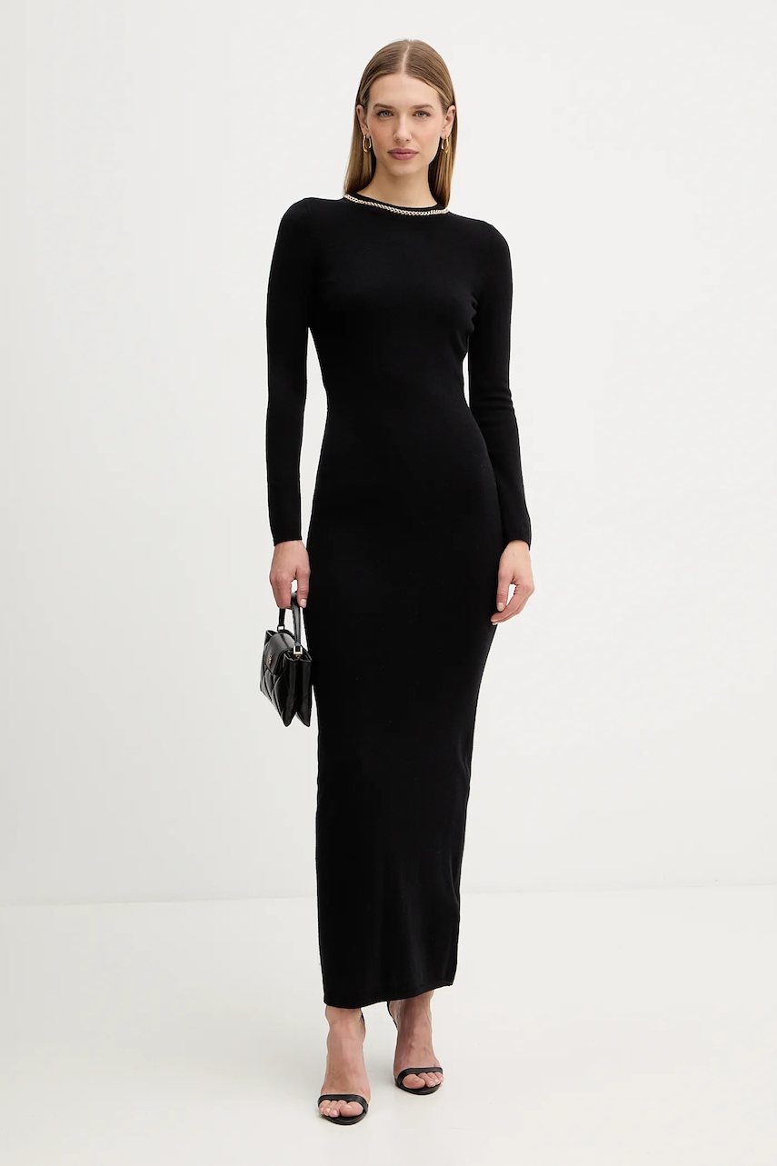 Marciano Guess sukienka z dodatkiem wełny ABEL kolor czarny maxi dopasowana 5BGK03 5782Z
