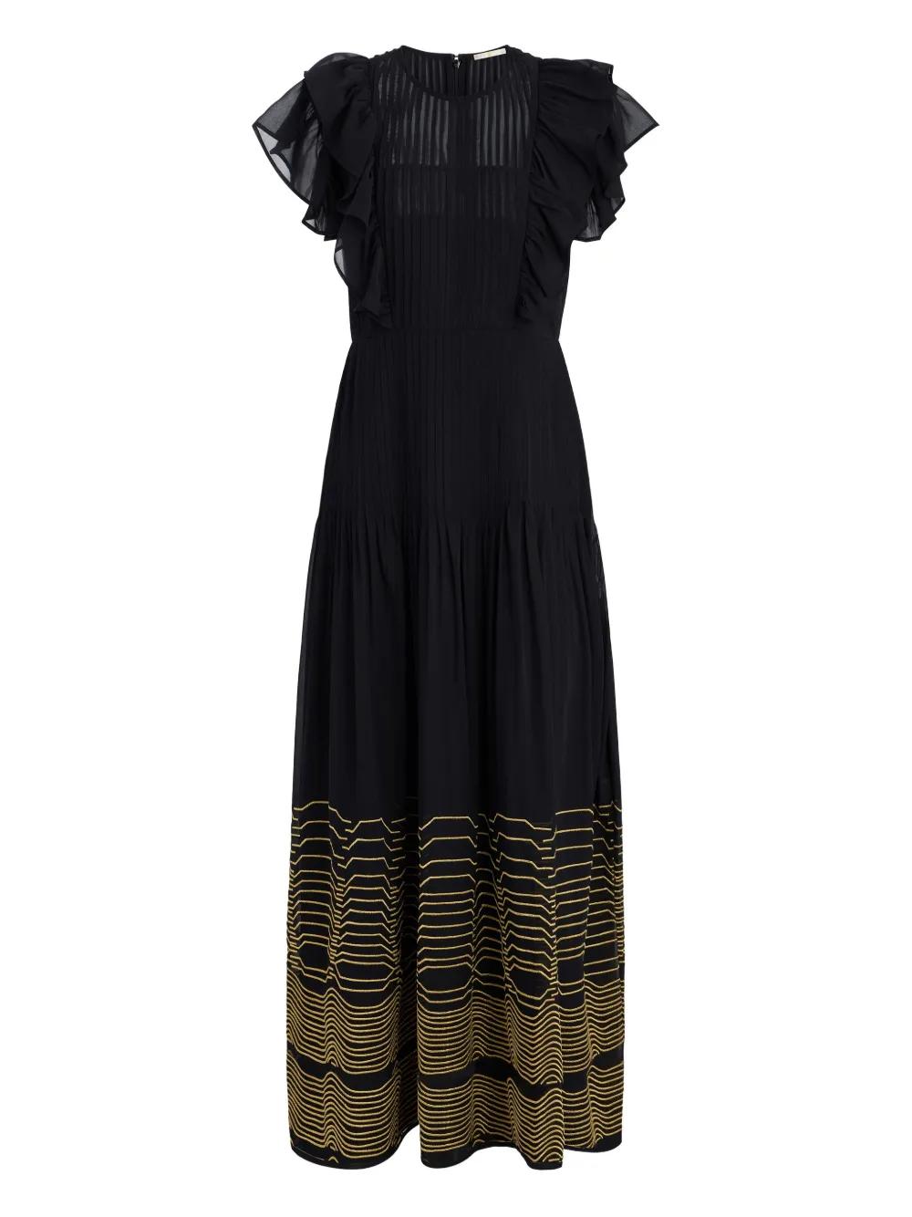 Marie Oliver Winfrey pleated ruffle maxi dress - Black