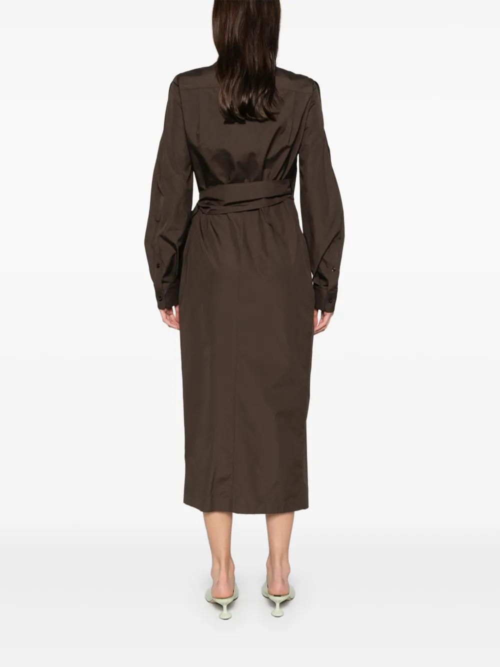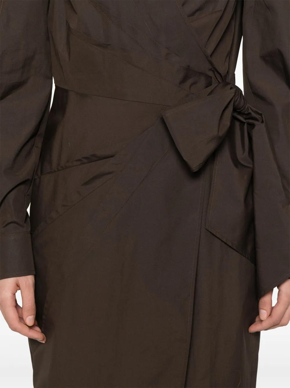 chocolate brown self-tie fastening wrap design buttoned cuffs classic collar