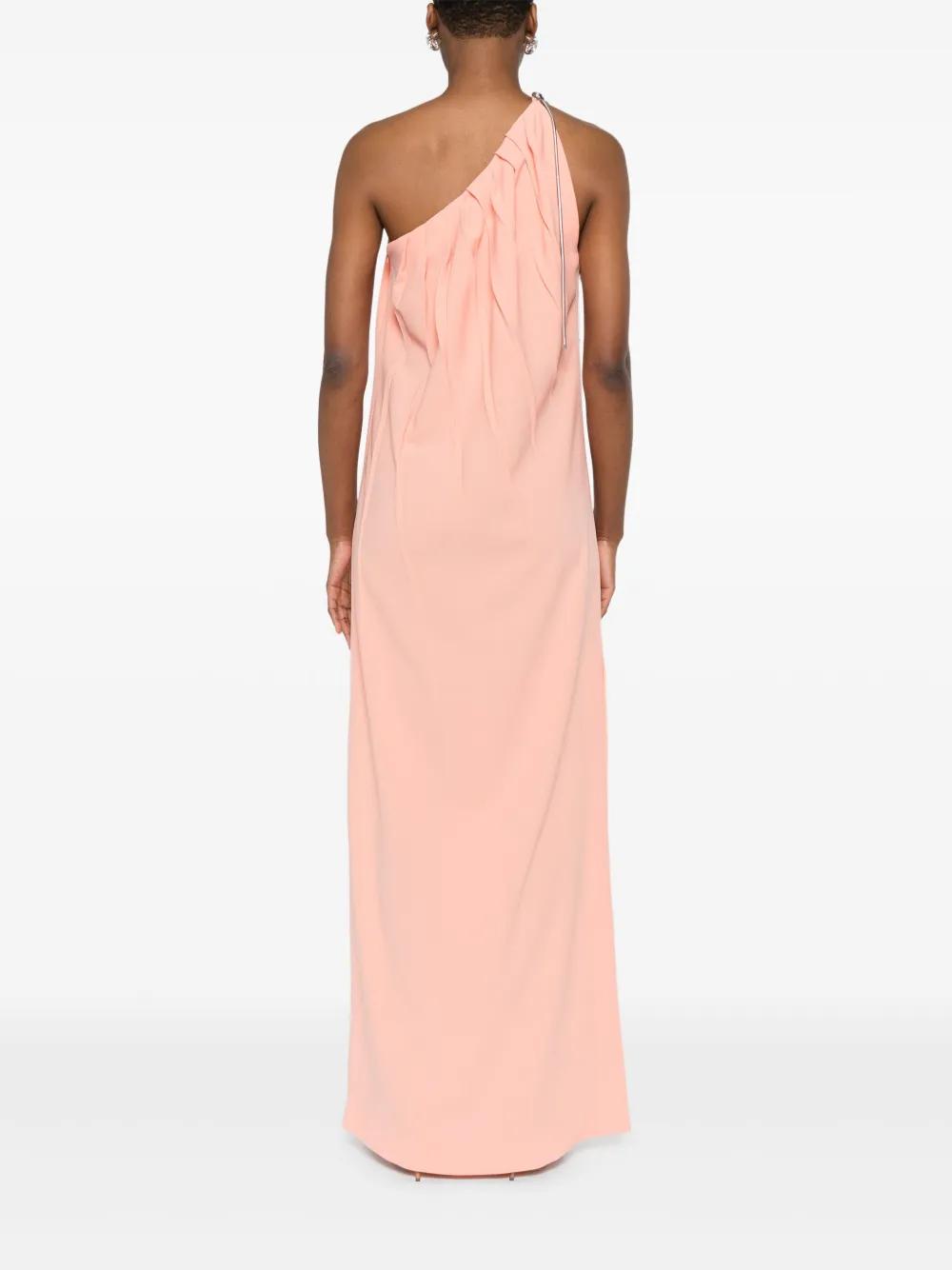 blush pink concealed side zip fastening chain-link detailing one-shoulder side slit
