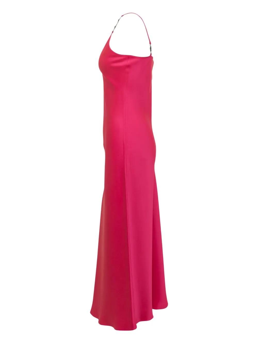 fuchsia pink crystal embellishment V-neck spaghetti straps