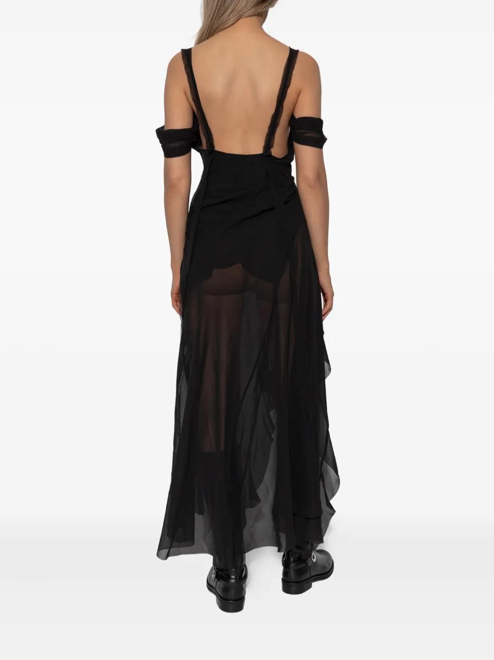 black shoulder straps cold-shoulder design ruffled detail split detail sheer finish