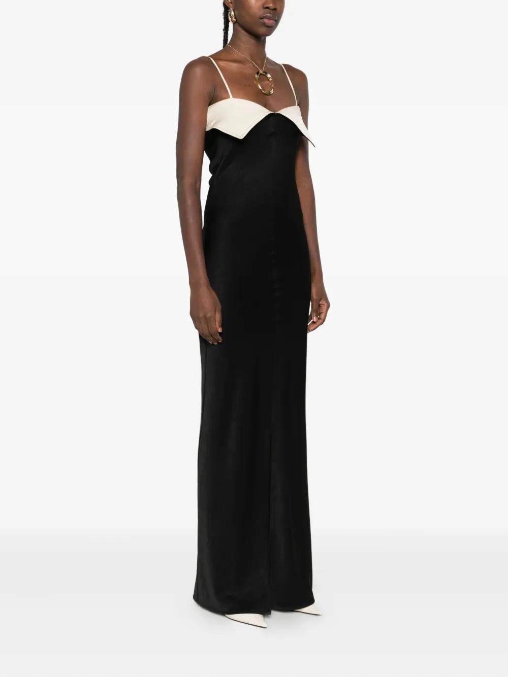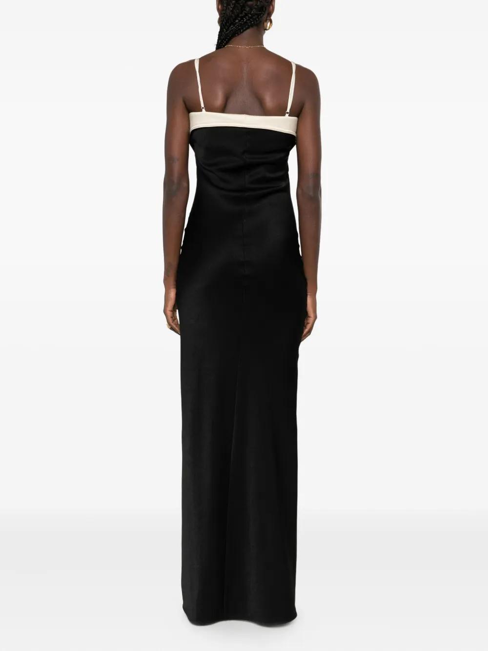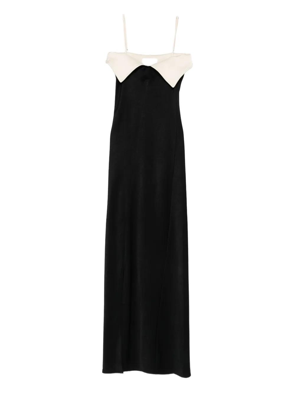 black off-white collar spaghetti straps maxi length straight hem side splits