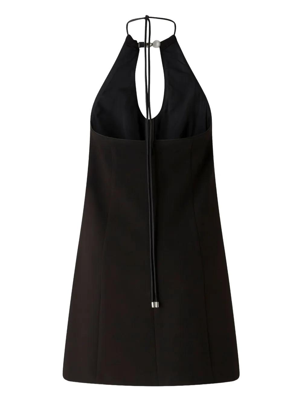 black halter neck tie fastening straight hem