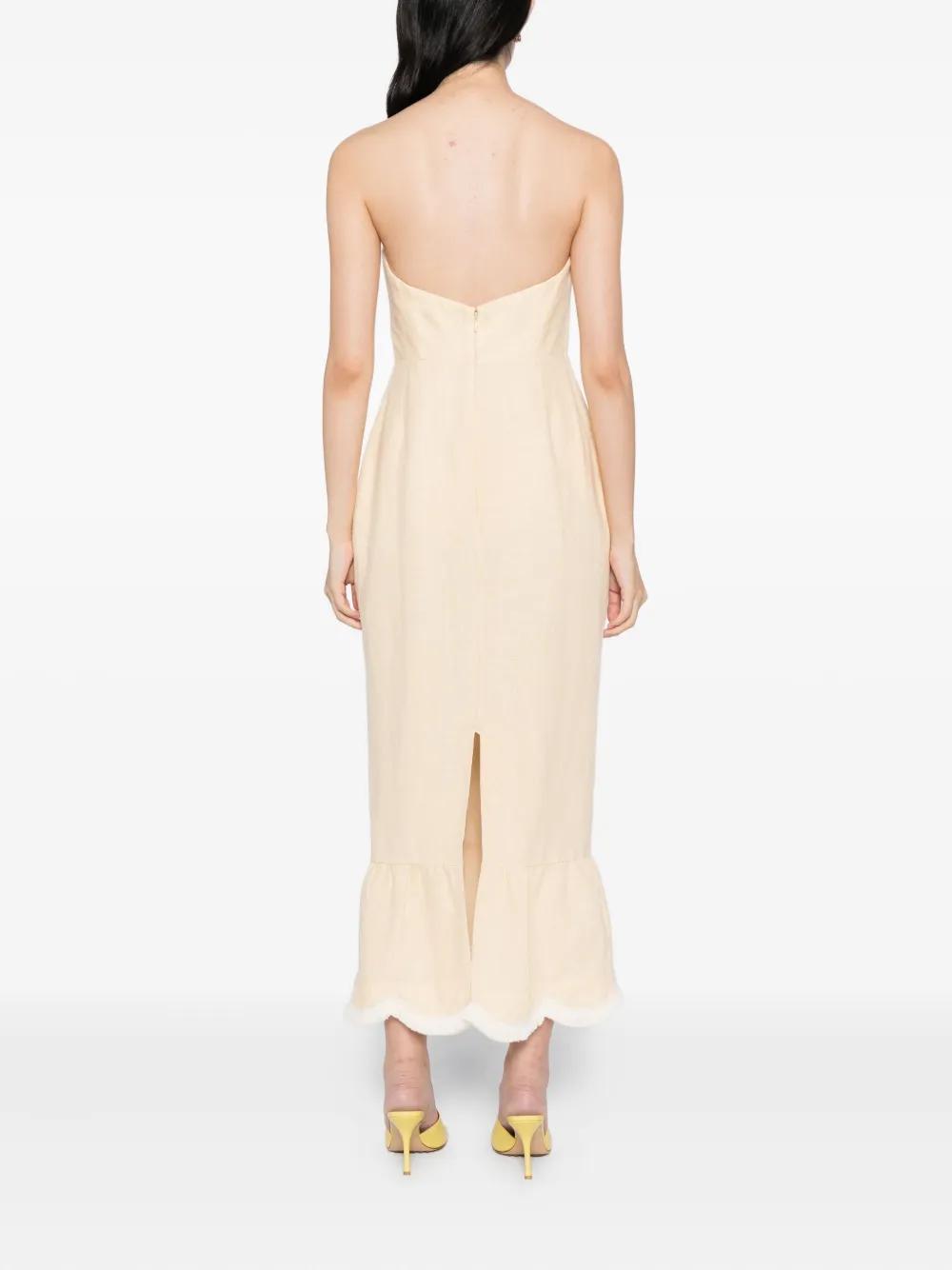 light yellow boned bodice rear zip fastening rear hook and eye fastening central rear vent