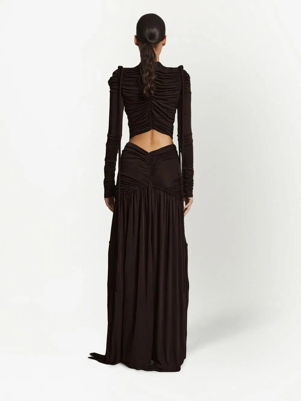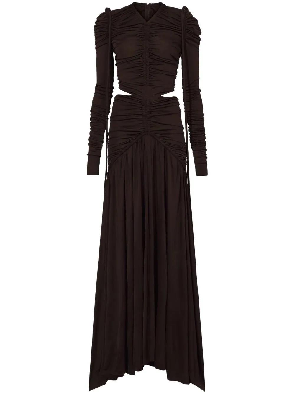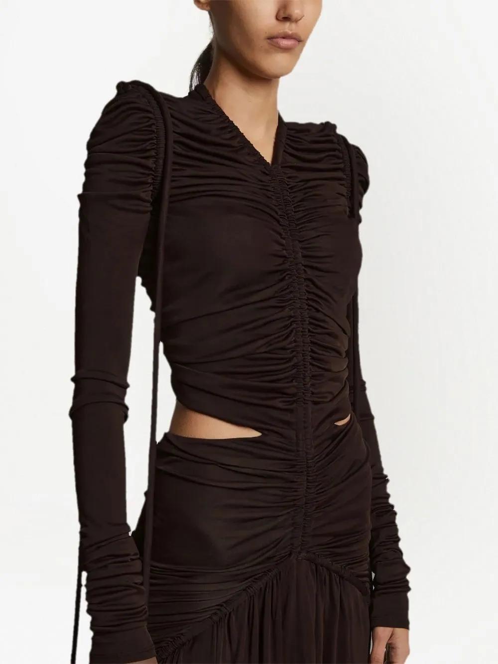 dark brown ruched detailing V-neck cut-out detailing long sleeves