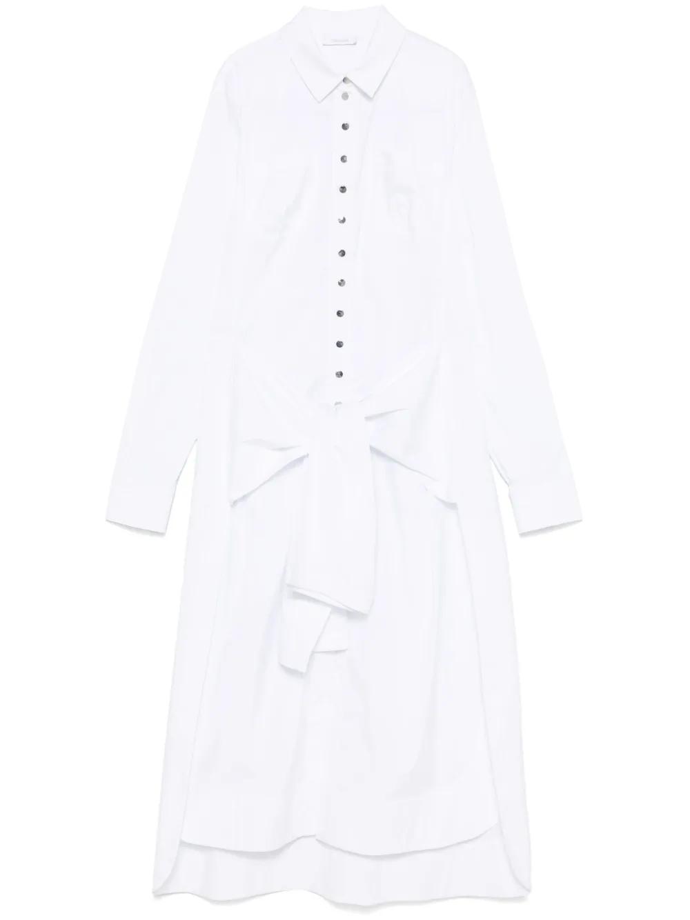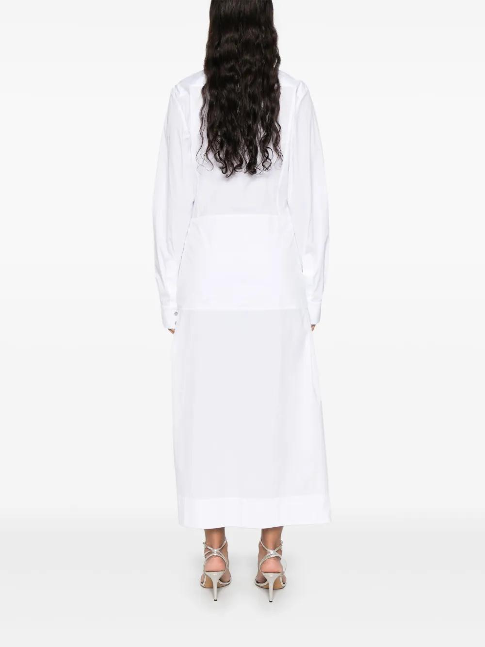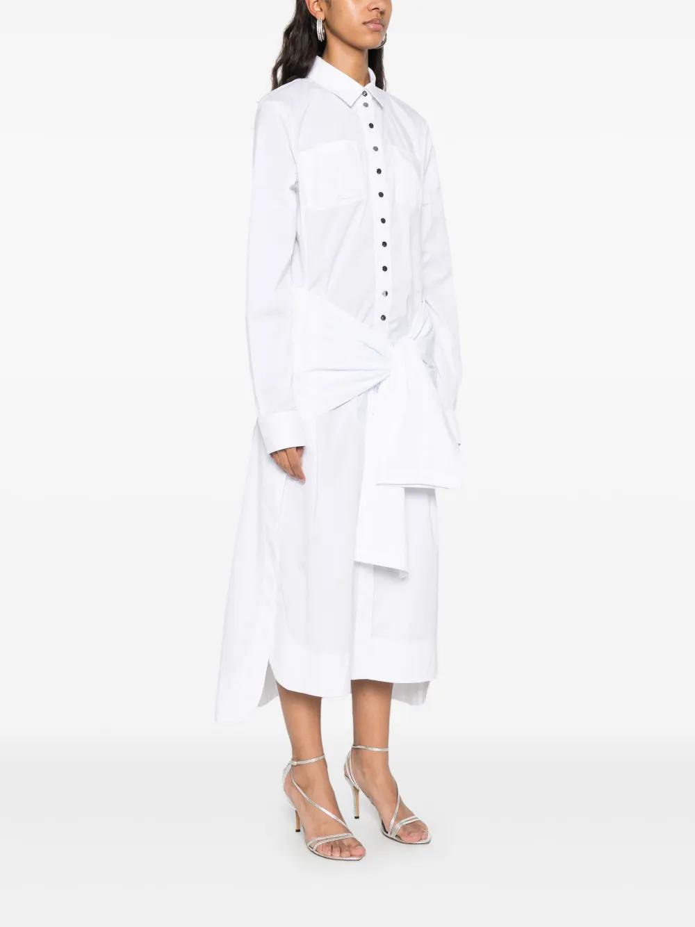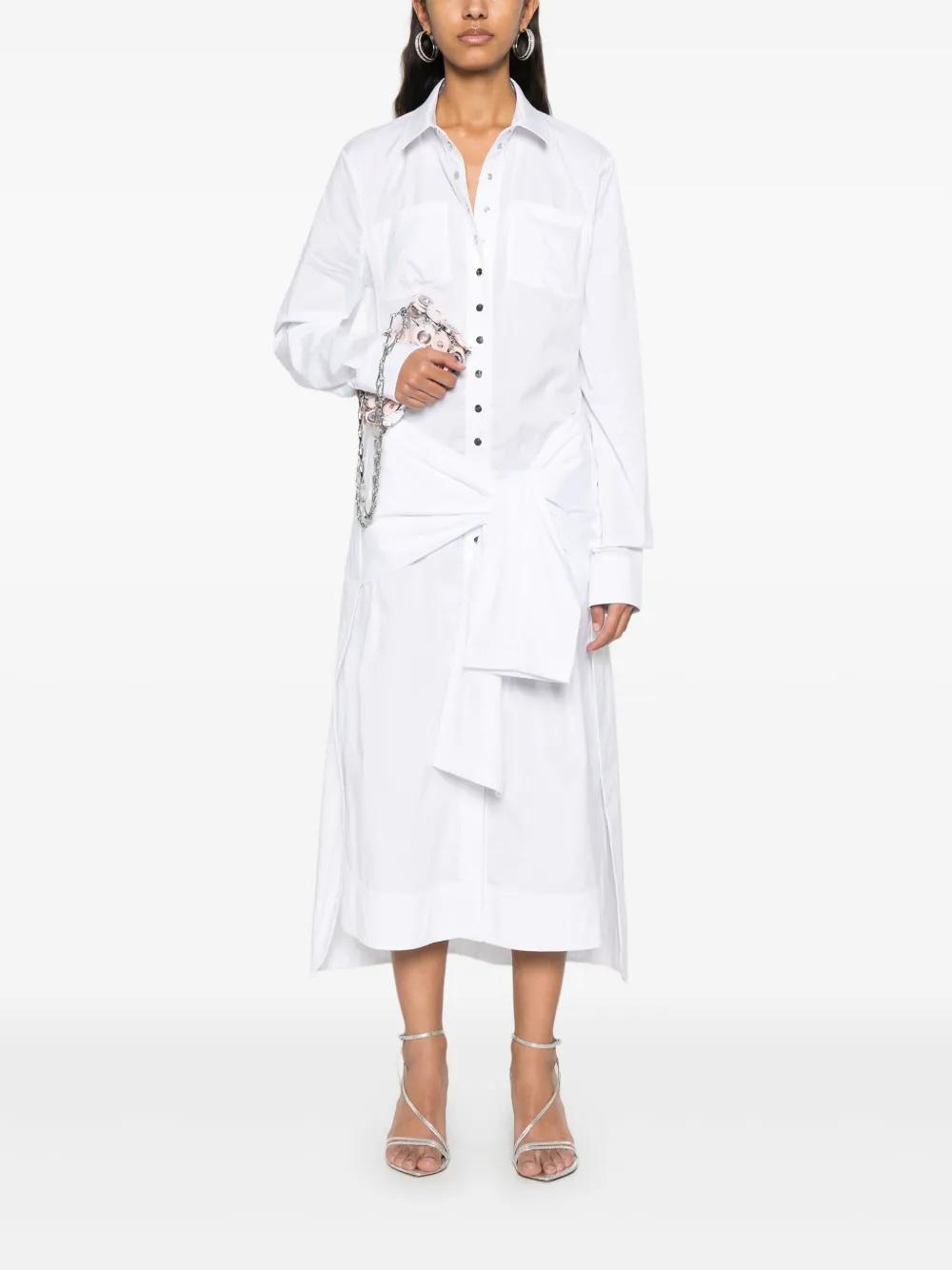 white front press-stud fastening two chest patch pockets press-stud fastening cuffs pleat detailing