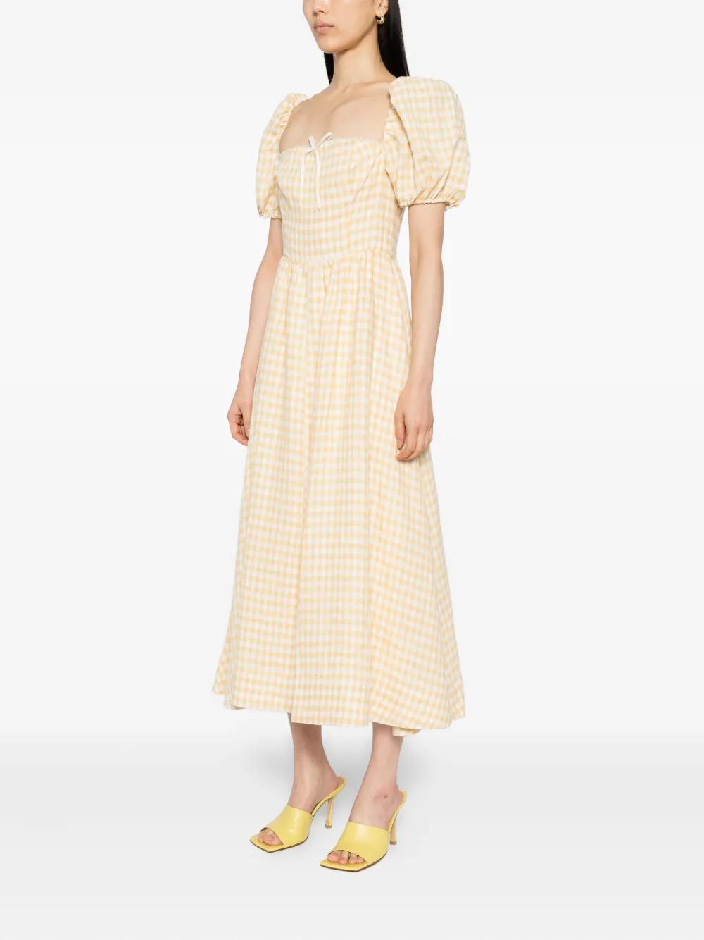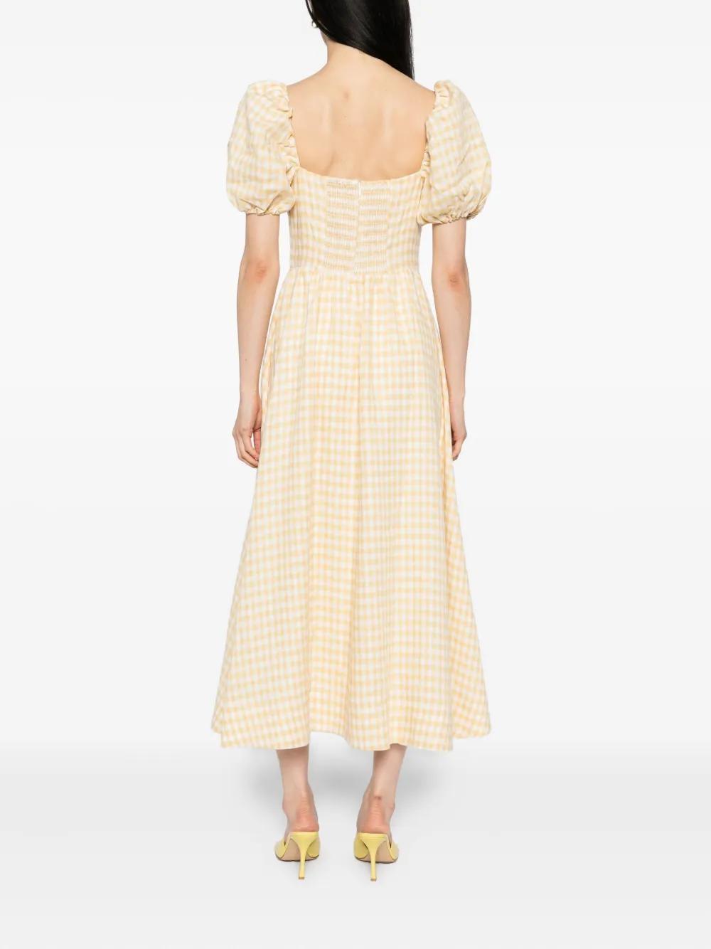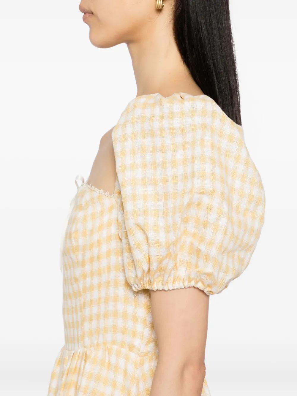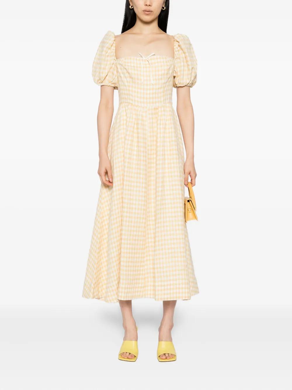 butter yellow concealed rear hook and zip fastening square neck balloon sleeves bow detailing
