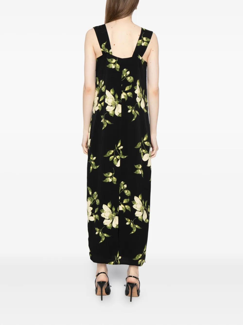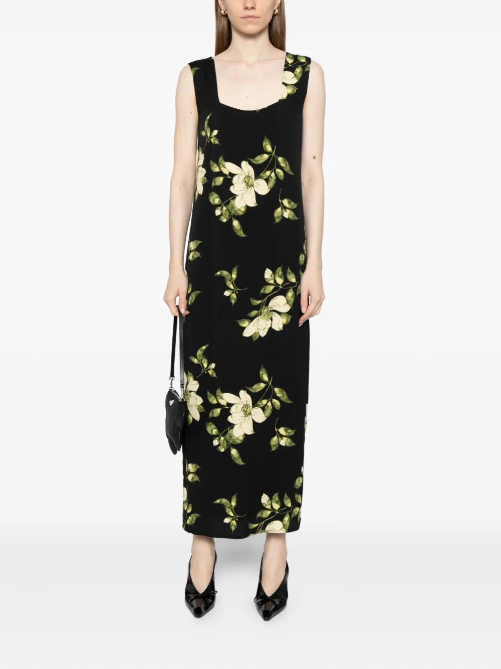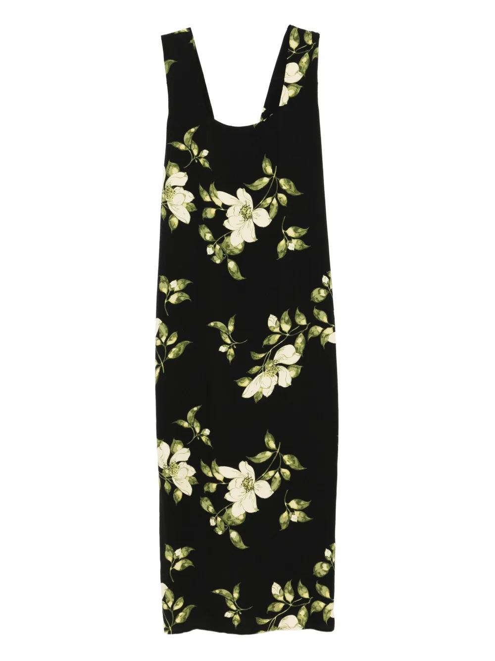 black silk graphic print to the front signature single-stitch logo boat neck short sleeves long length