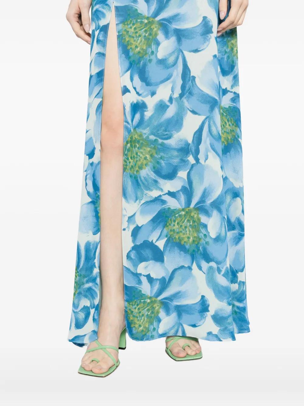cornflower blue rear button and zip fastening adjustable shoulder strap floral print