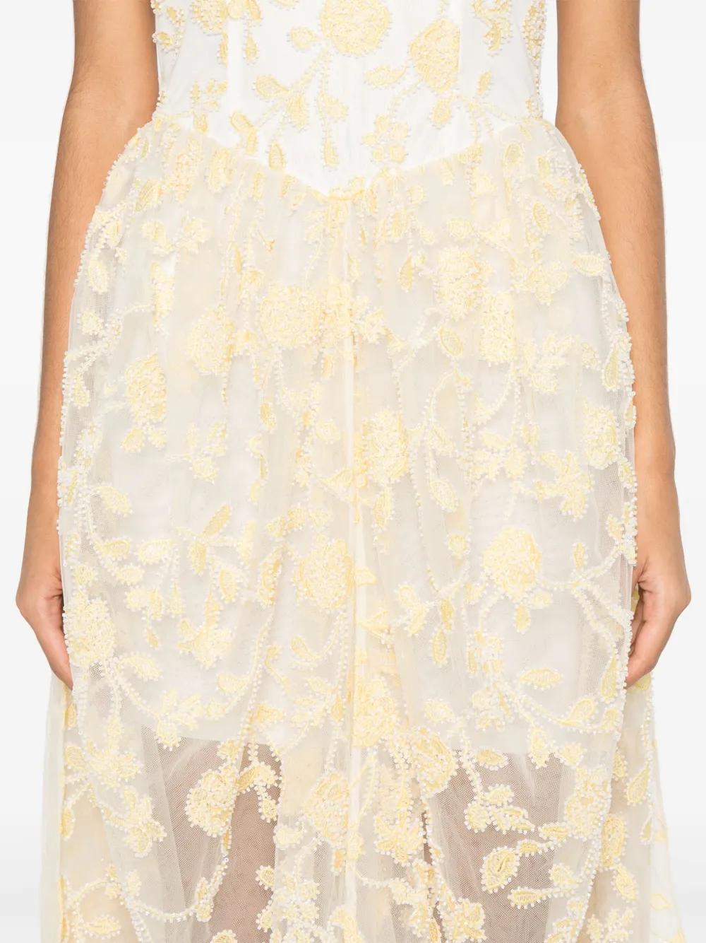 ROTATE BIRGER CHRISTENSEN floral-beaded midi dress - Yellow