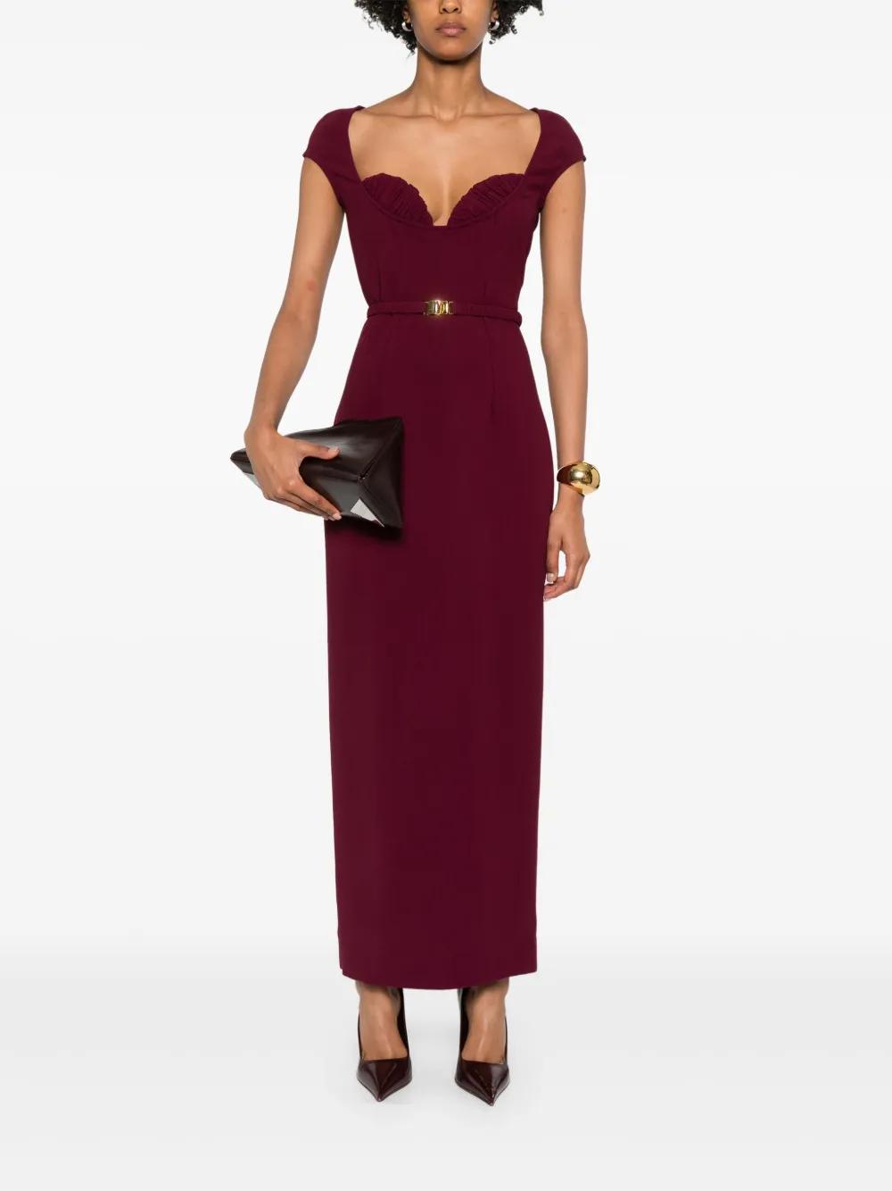 burgundy cap sleeves sweetheart neckline self-tie belt concealed zip fastening