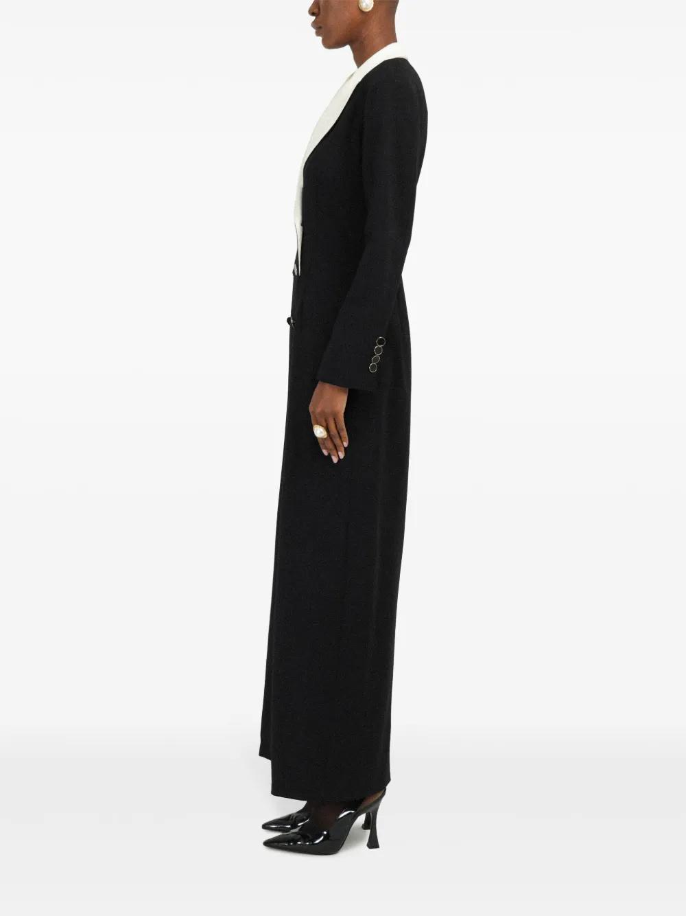 black double-breasted button fastening contrasting lapels long sleeves buttoned cuffs front slit straight hem maxi