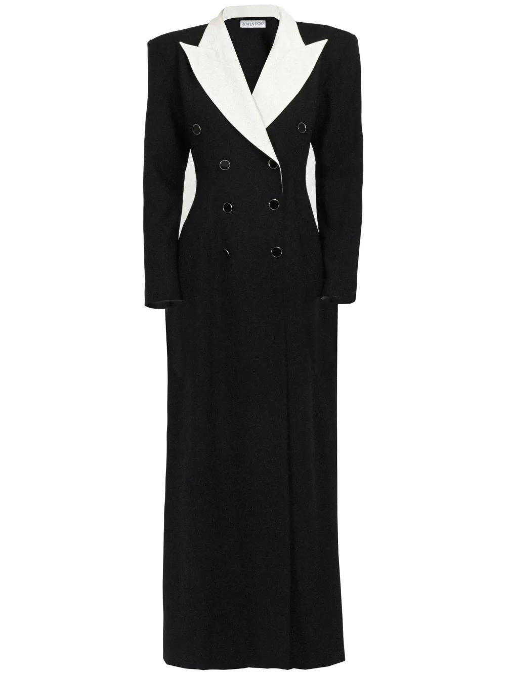 Rowen Rose contrasting-collar tuxedo maxi dress - Black