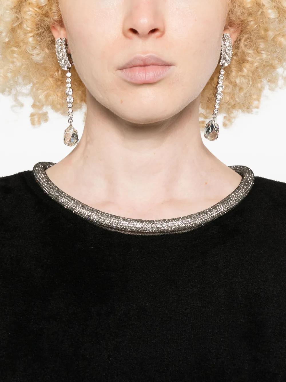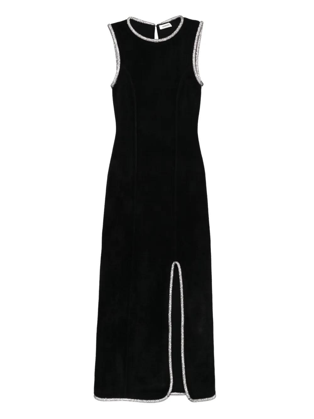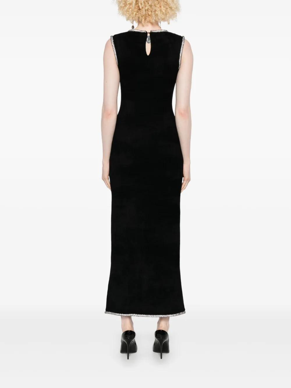 black sleeveless round neck side split crystal-embellished trim