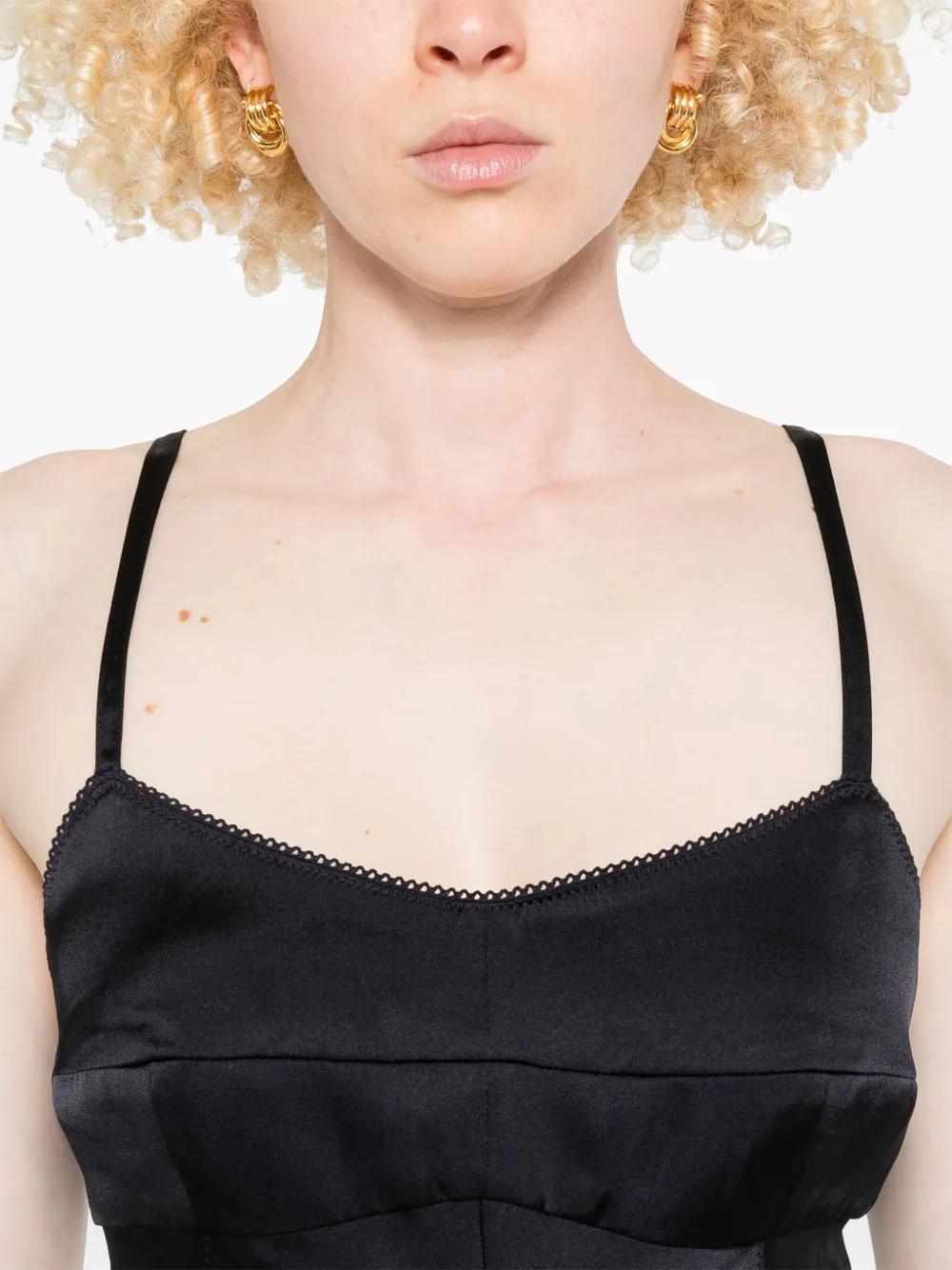 black concealed rear zip fastening adjustable spaghetti straps bustier-style neckline