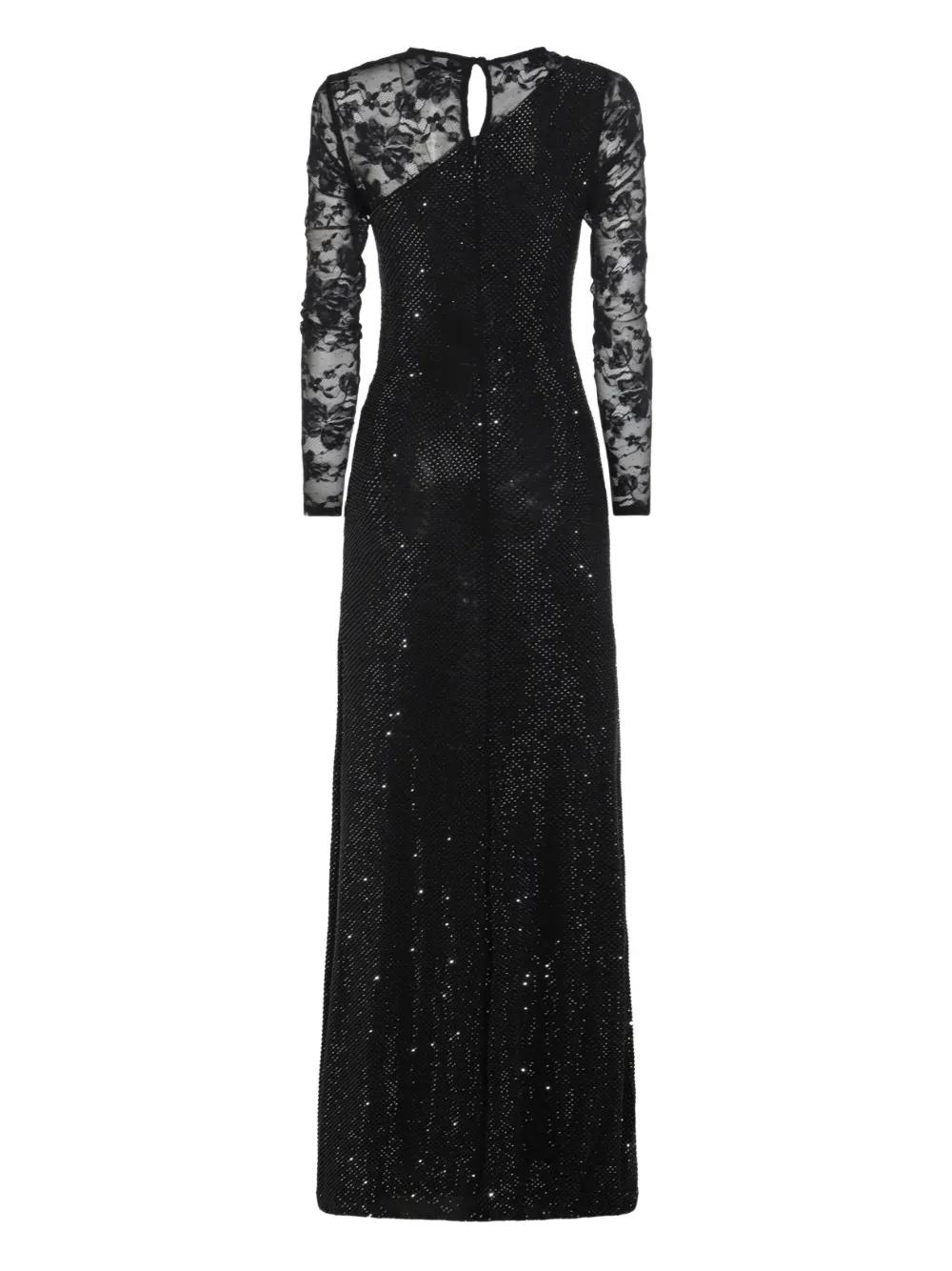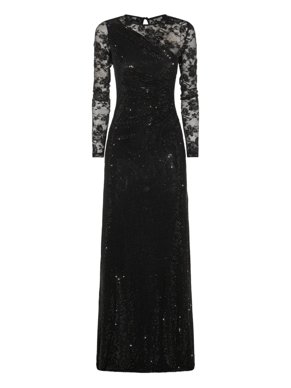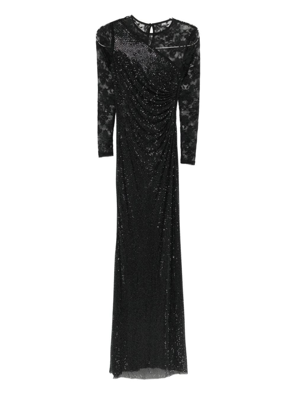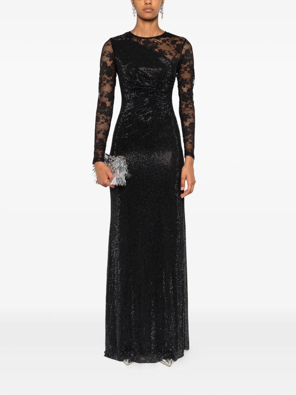 Self-Portrait rhinestone-embellished long-sleeve maxi dress - Black