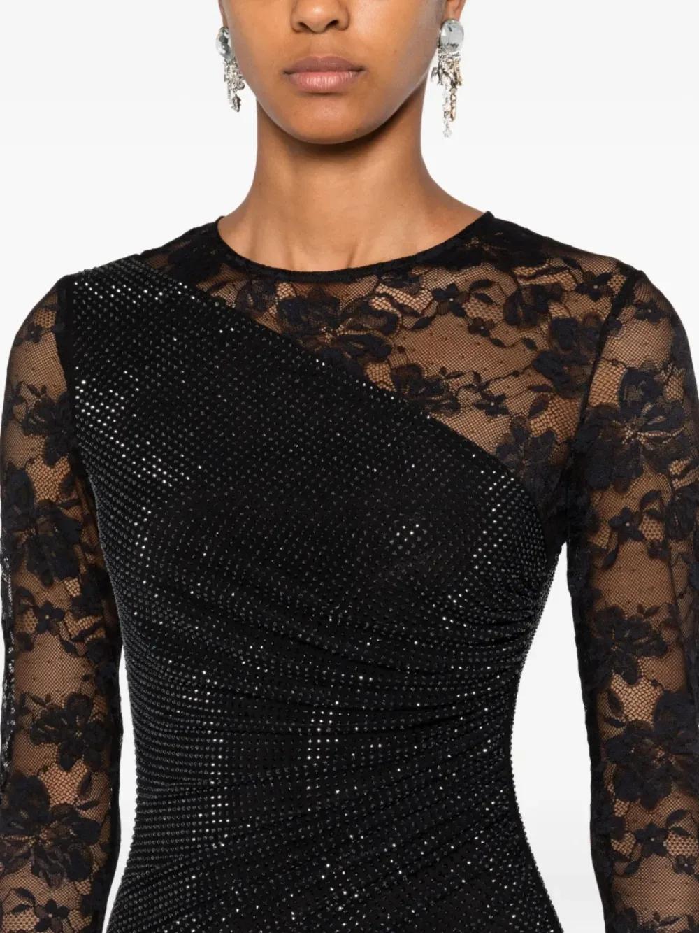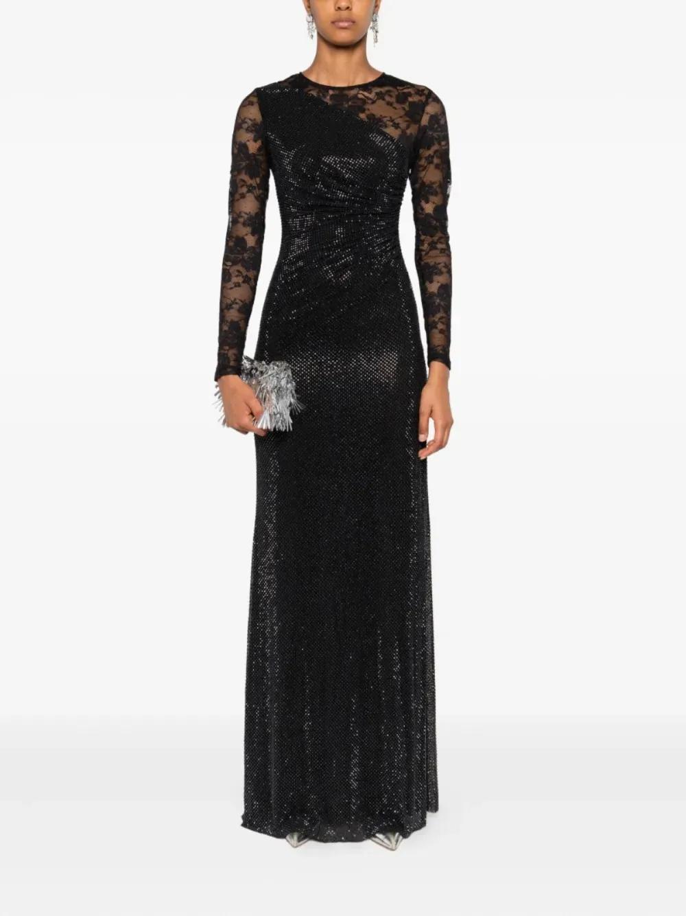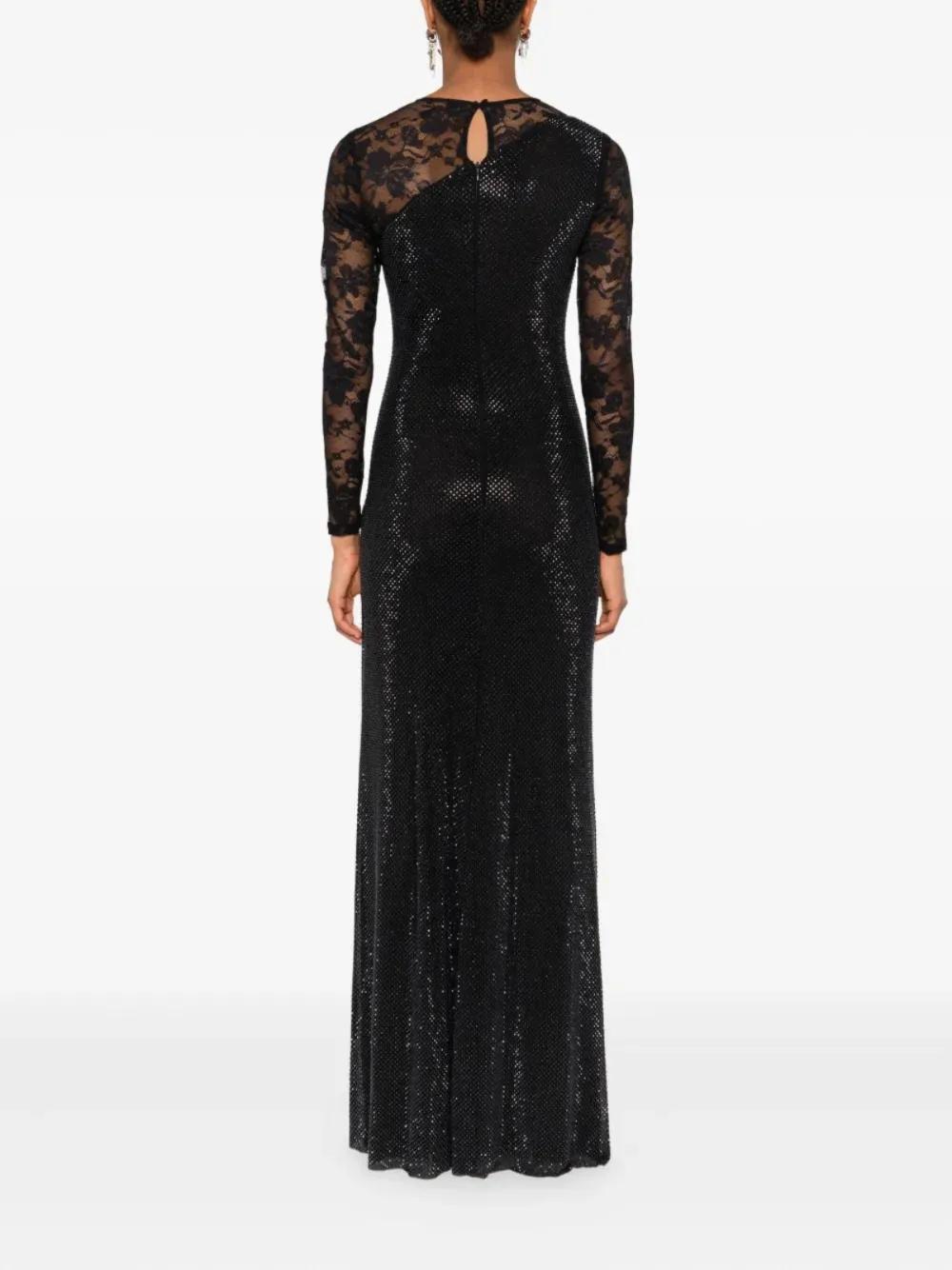 Self-Portrait rhinestone-embellished long-sleeve maxi dress - Black