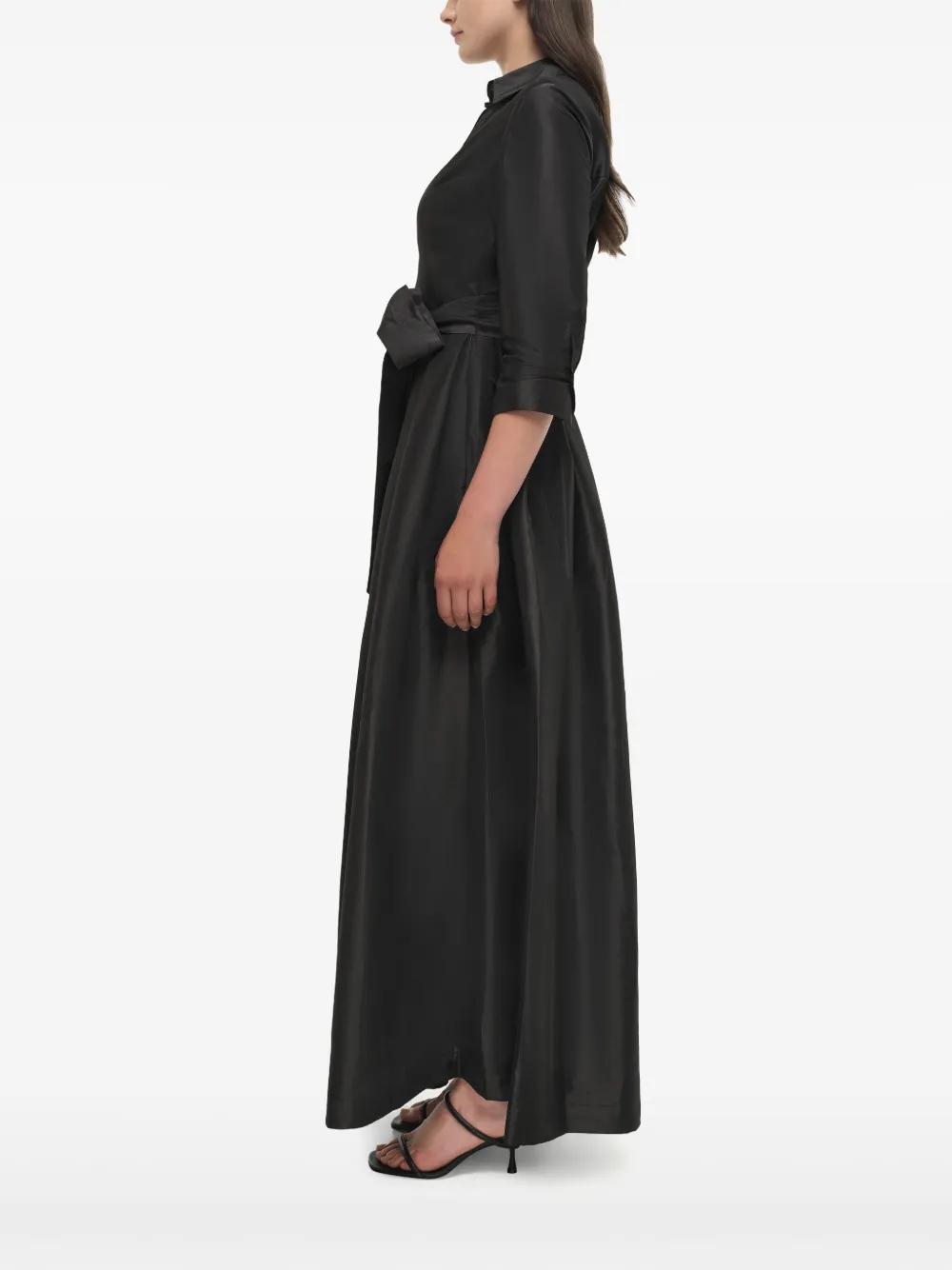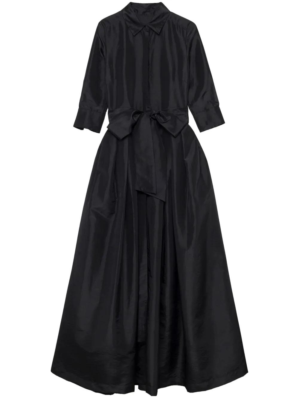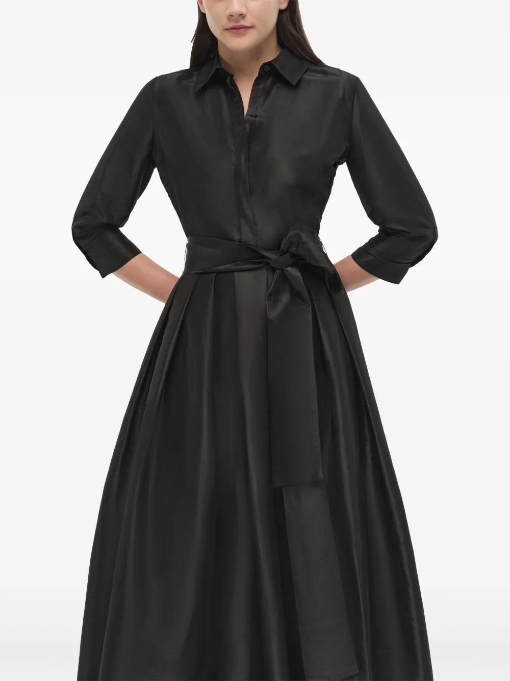 black front button fastening flared detachable and adjustable waist belt three-quarter length sleeves