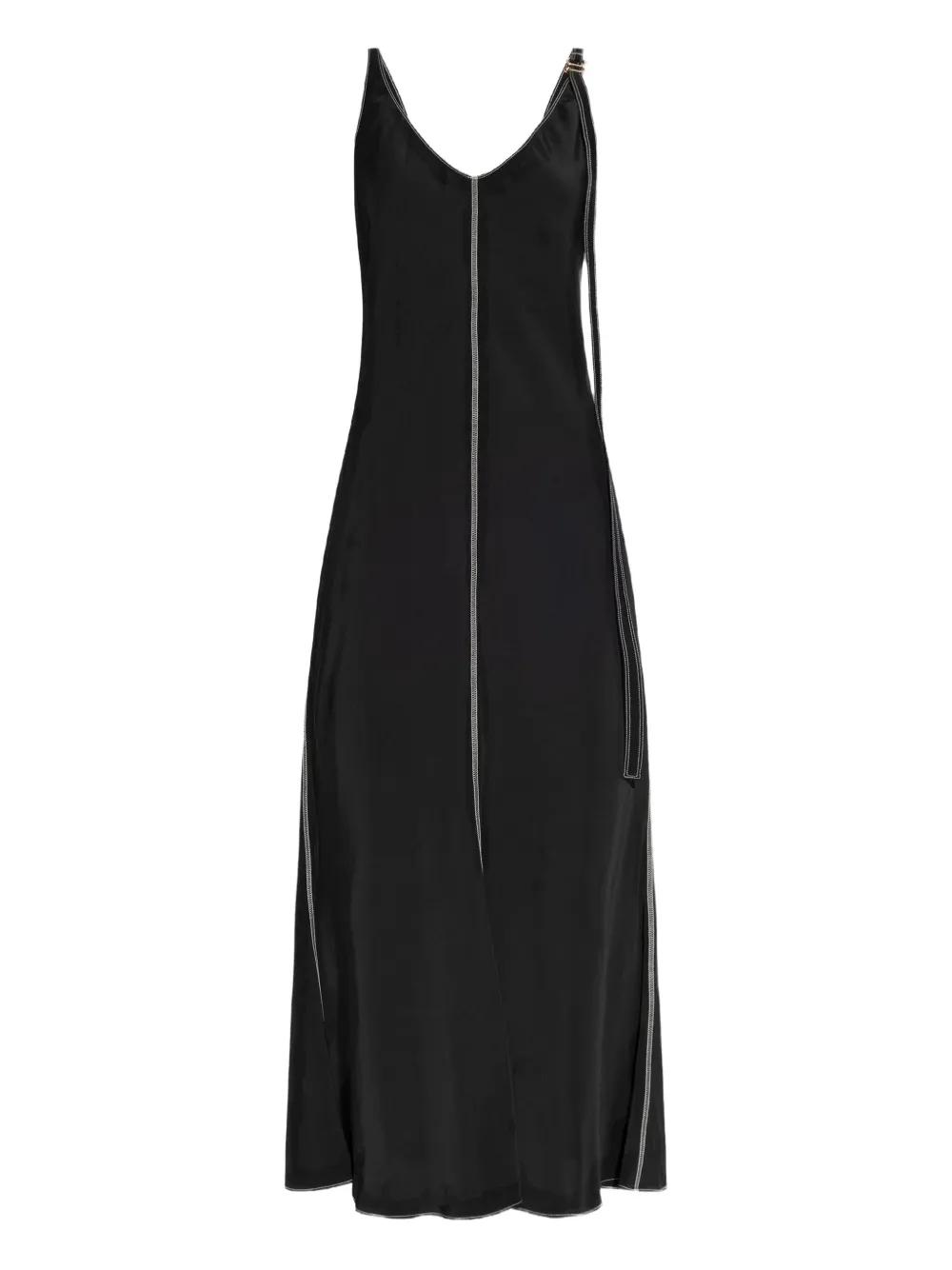 black adjustable shoulder straps seam detailing V-neck sleeveless