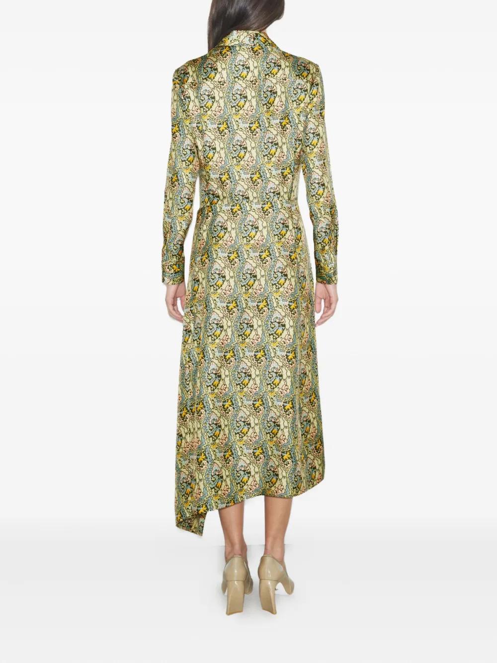 pale yellow paisley print wrap fastening long sleeves asymmetrical hemline