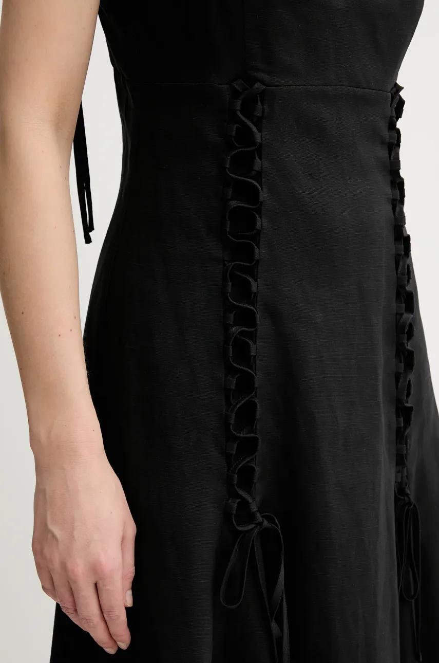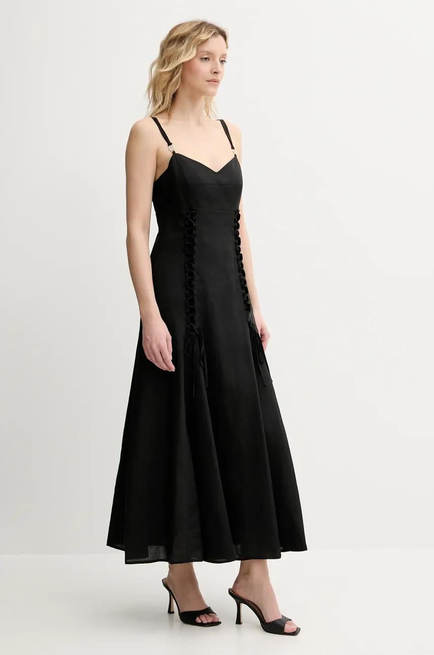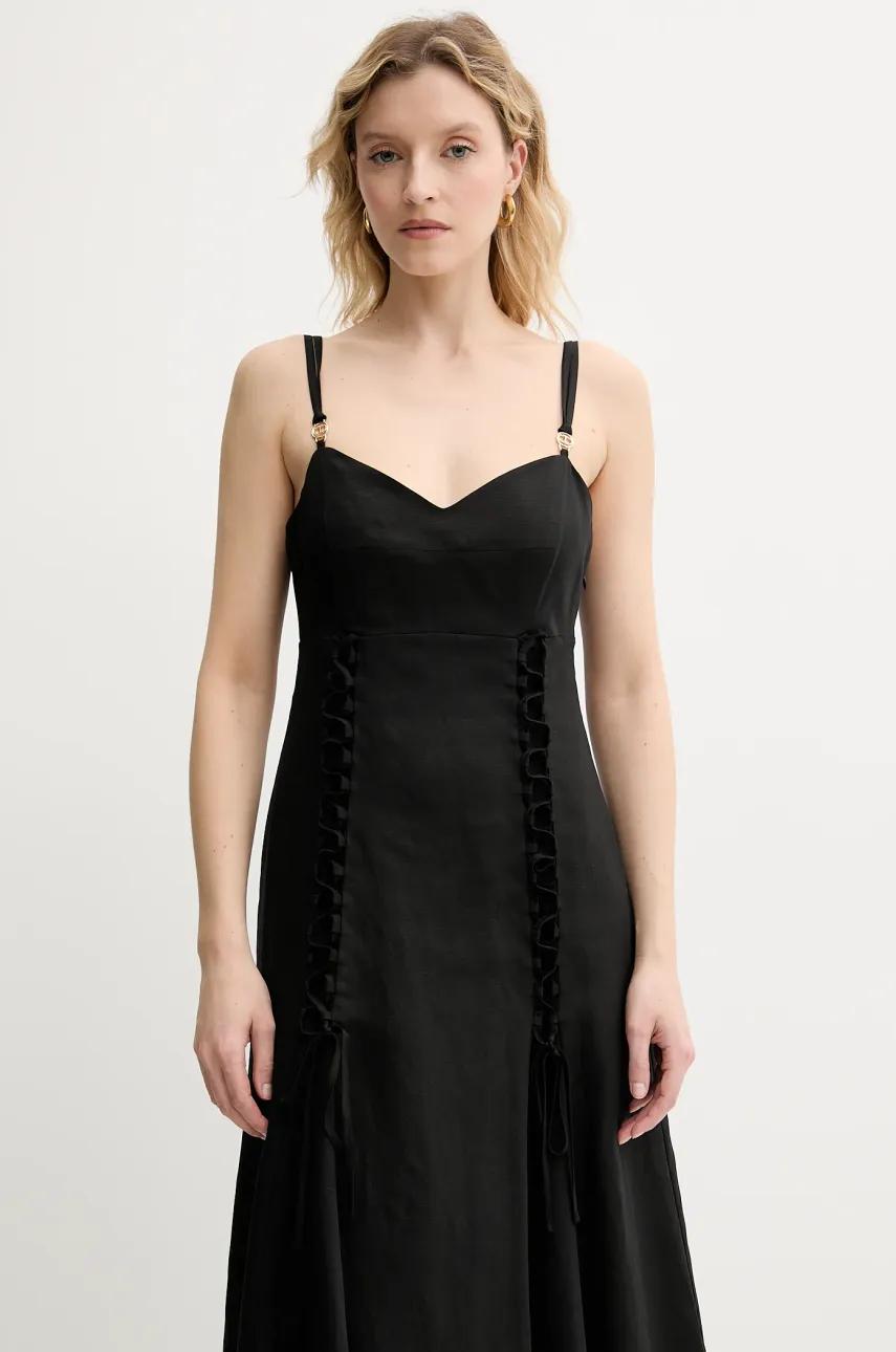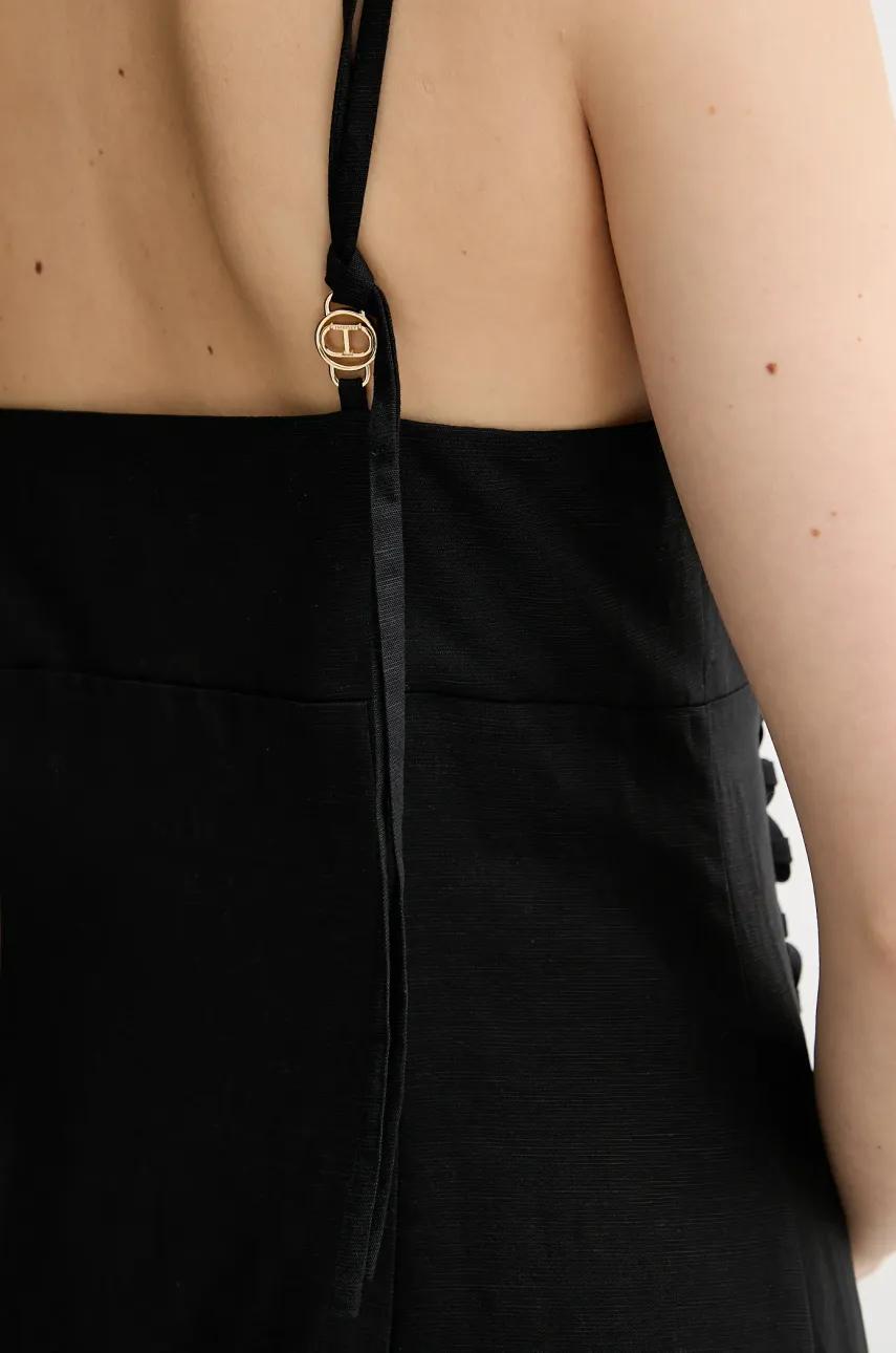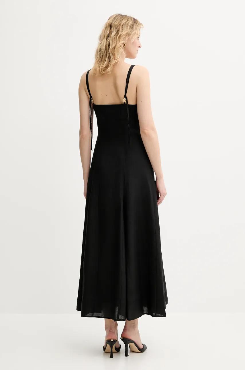 Twinset sukienka z domieszką lnu kolor czarny maxi rozkloszowana 251TT2070
