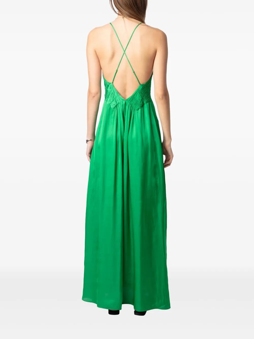 jade green adjustable spaghetti straps V-neck pleat detailing long length