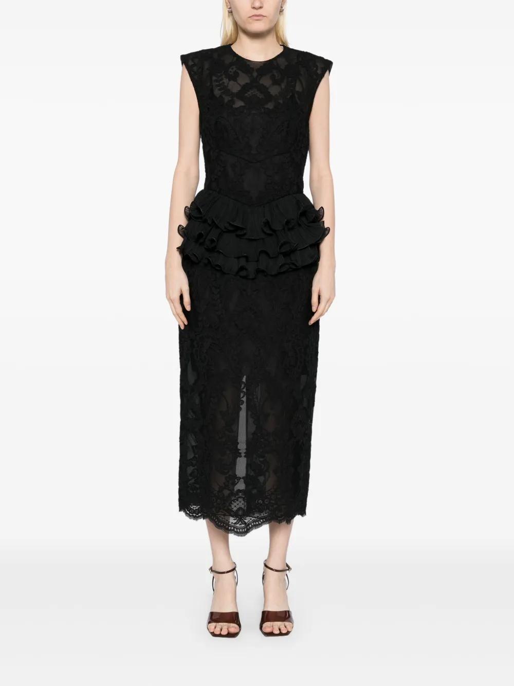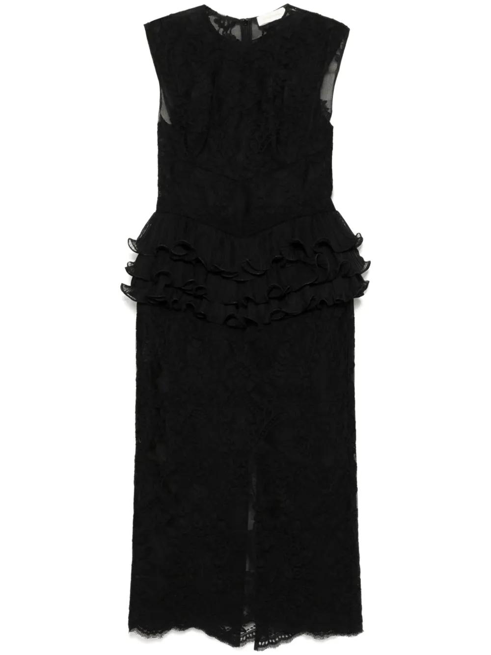 ZIMMERMANN crush lace frill dress - Black