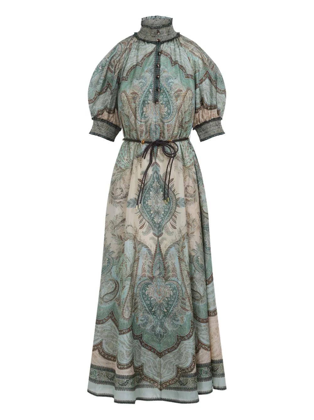 ZIMMERMANN high-neck paisley silk dress - Blue