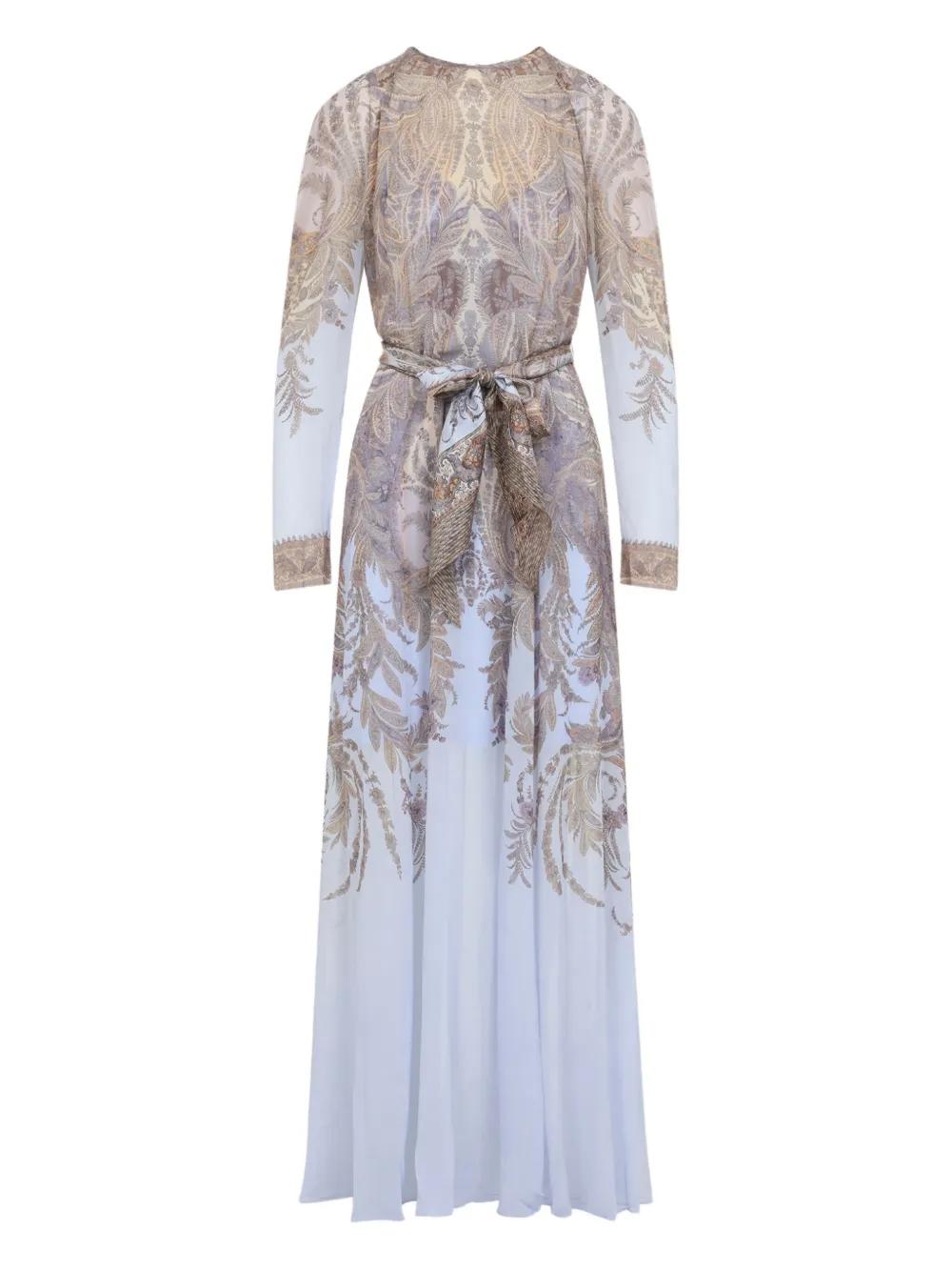 purple paisley print long sleeves belted waist