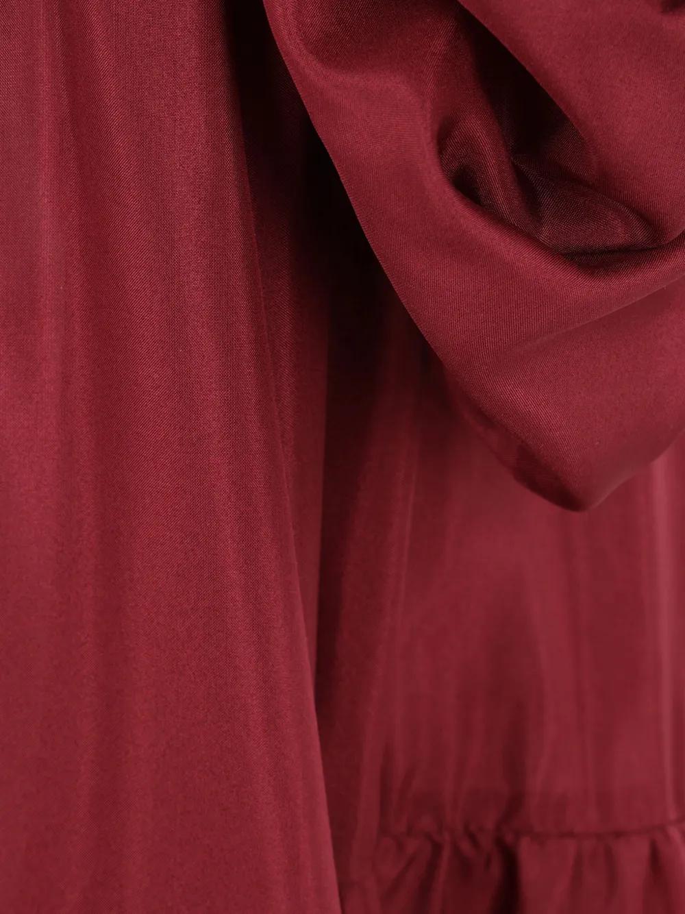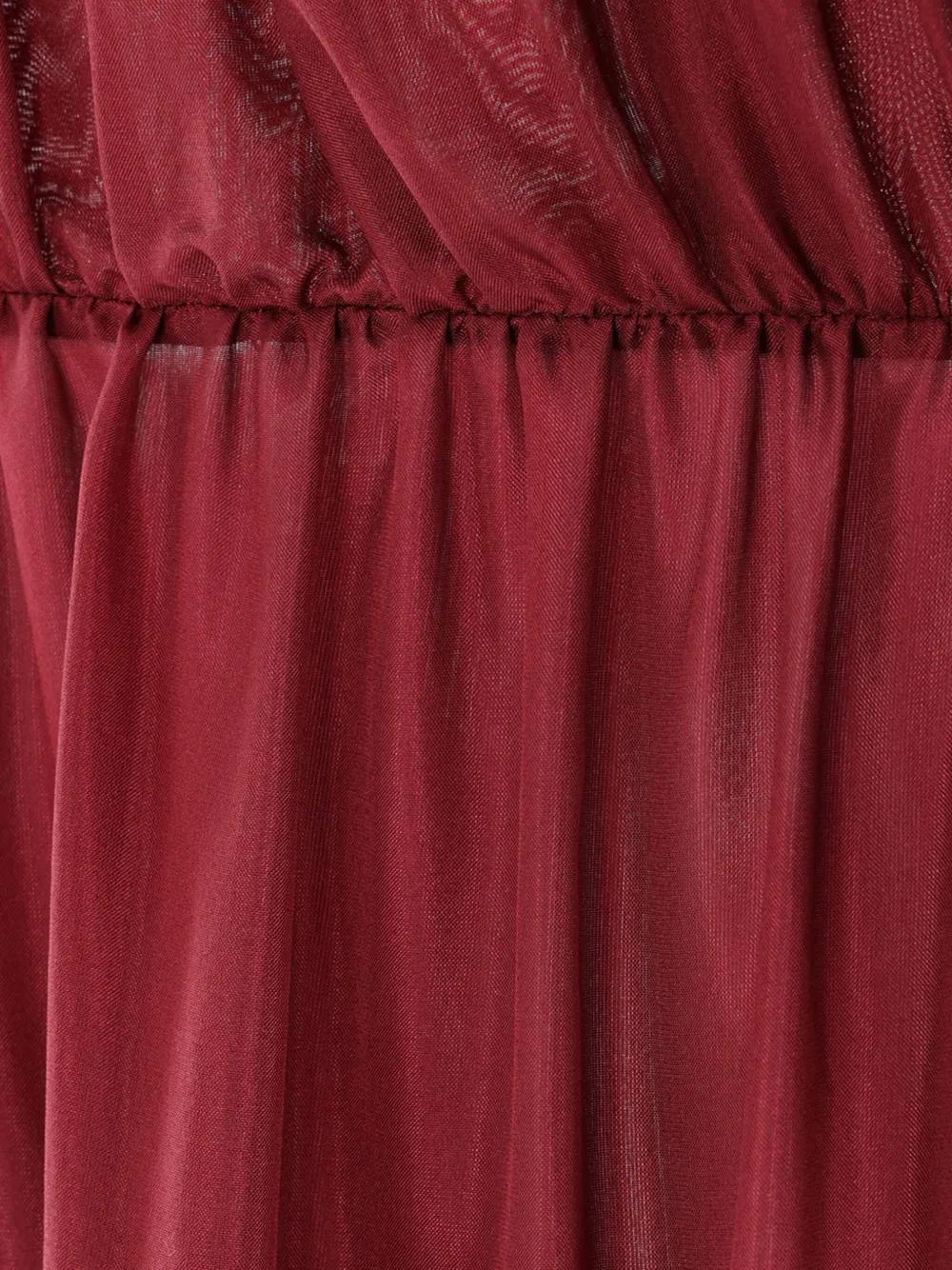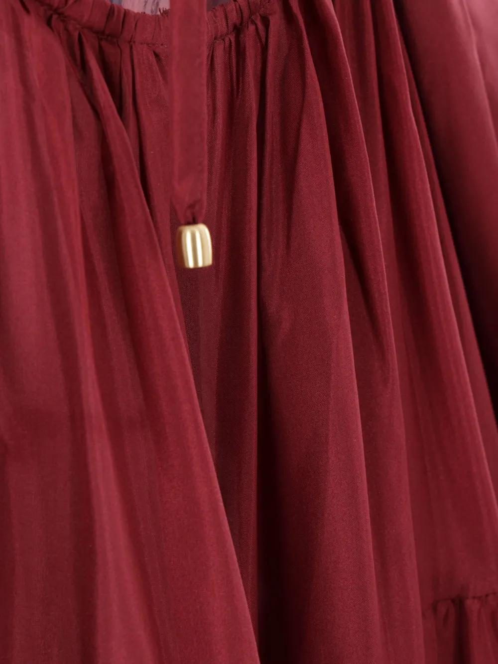 burgundy slide-lock fastening adjustable spaghetti straps draped detailing tiered skirt