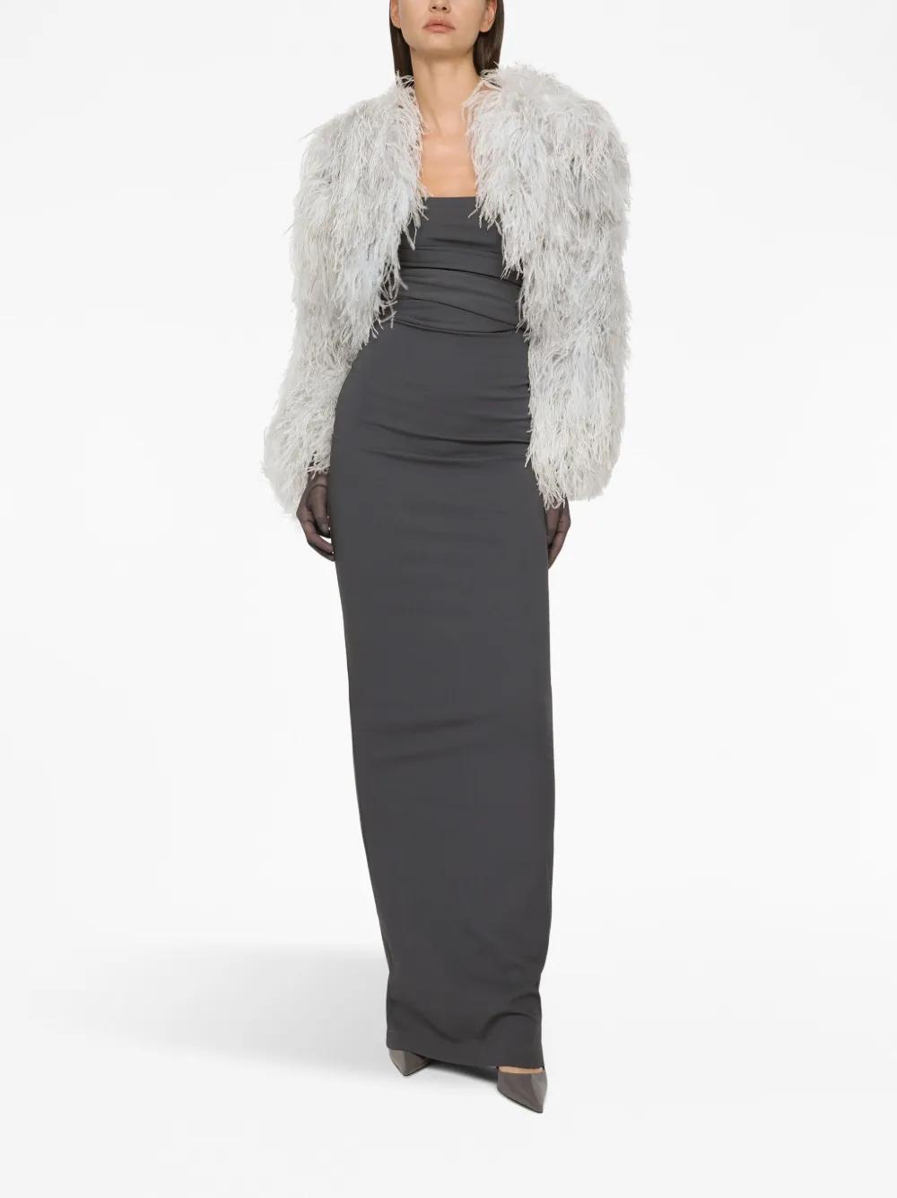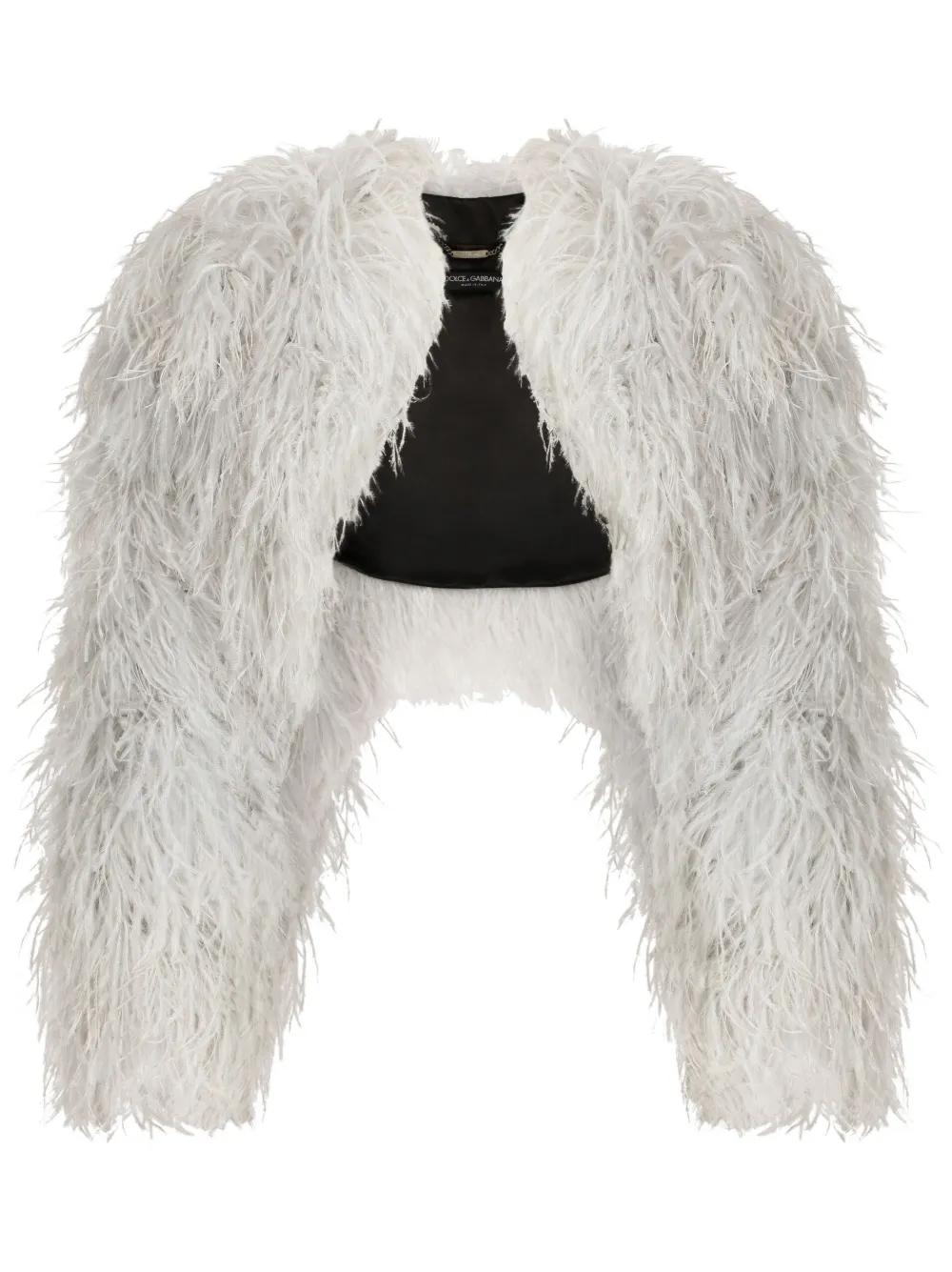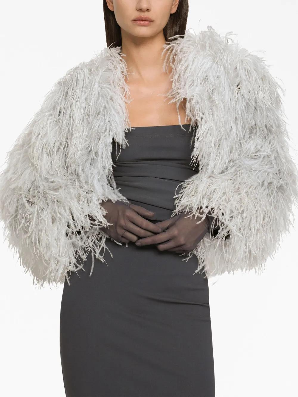 Dolce & Gabbana KIM DOLCE&GABBANA feather-trim bolero jacket - Grey