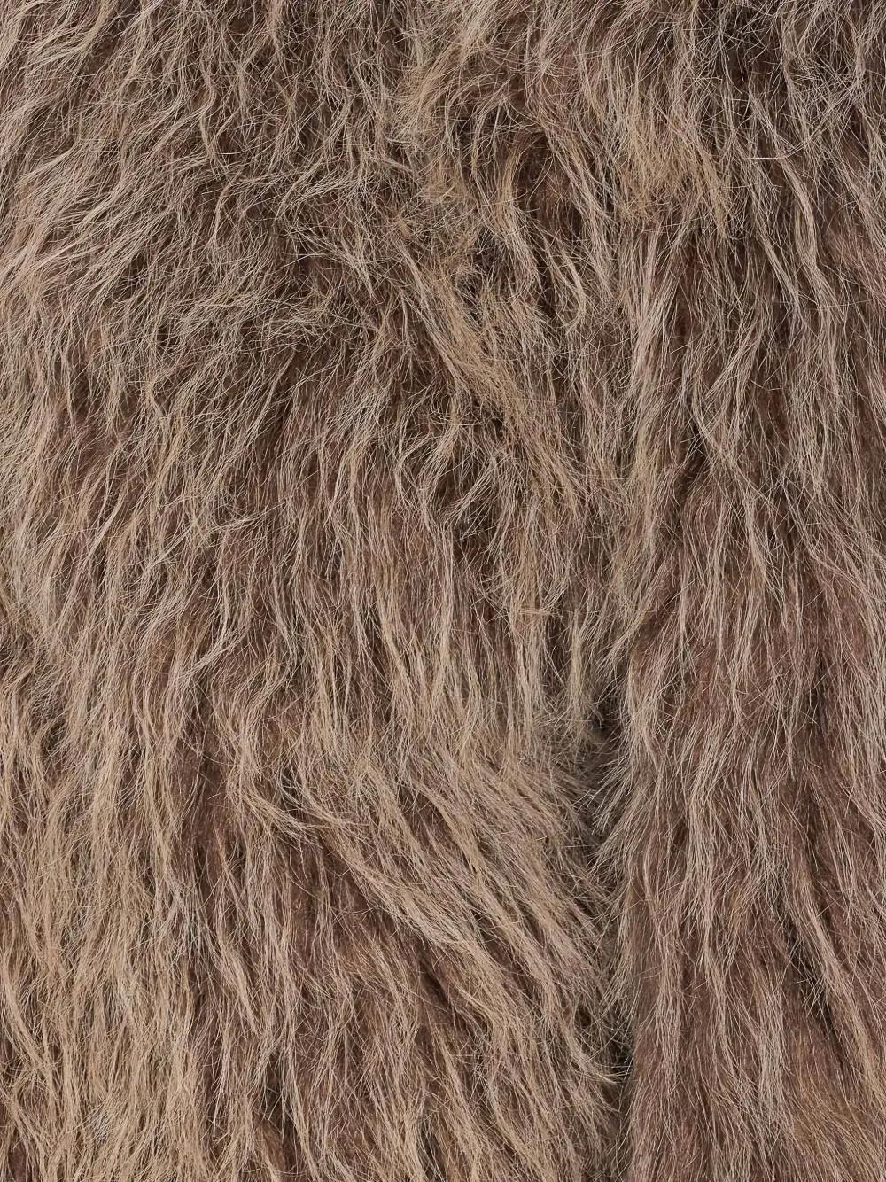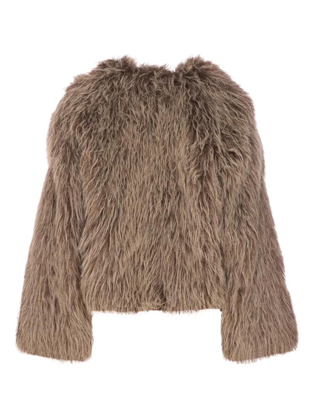 beige shearling trim button fastening front pocket panelled design long sleeves
