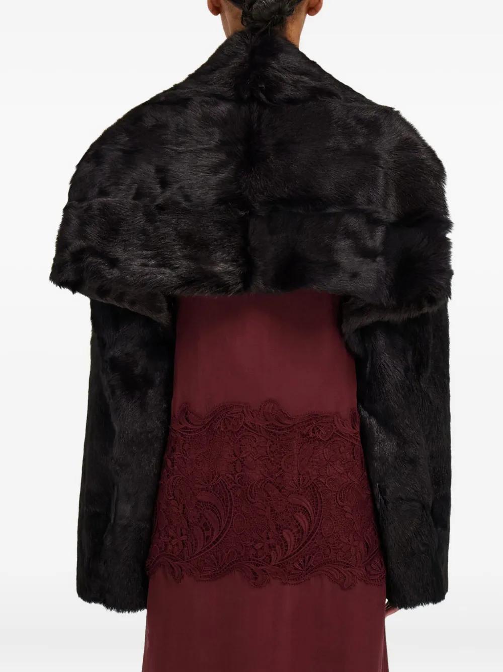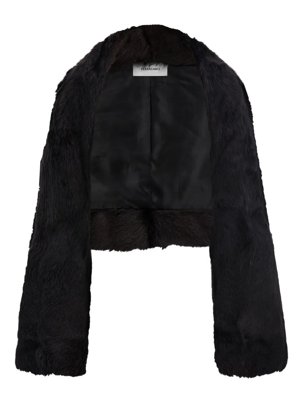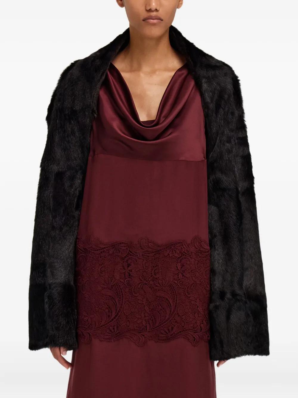cedar brown faux-fur design front button fastening notched lapels two side slit pockets long sleeves straight hem