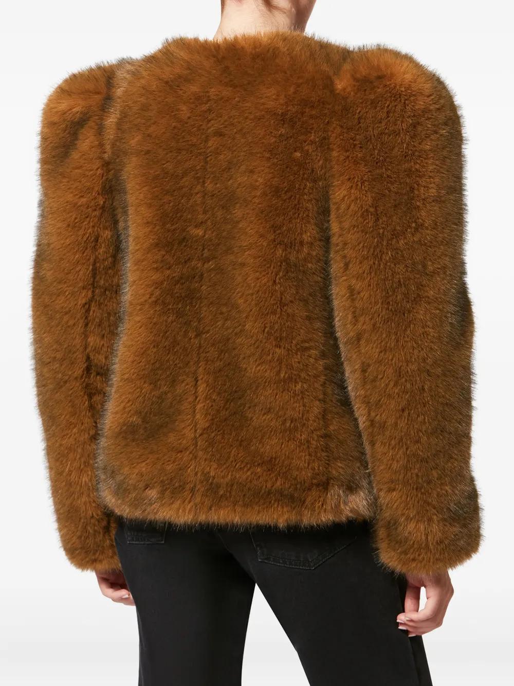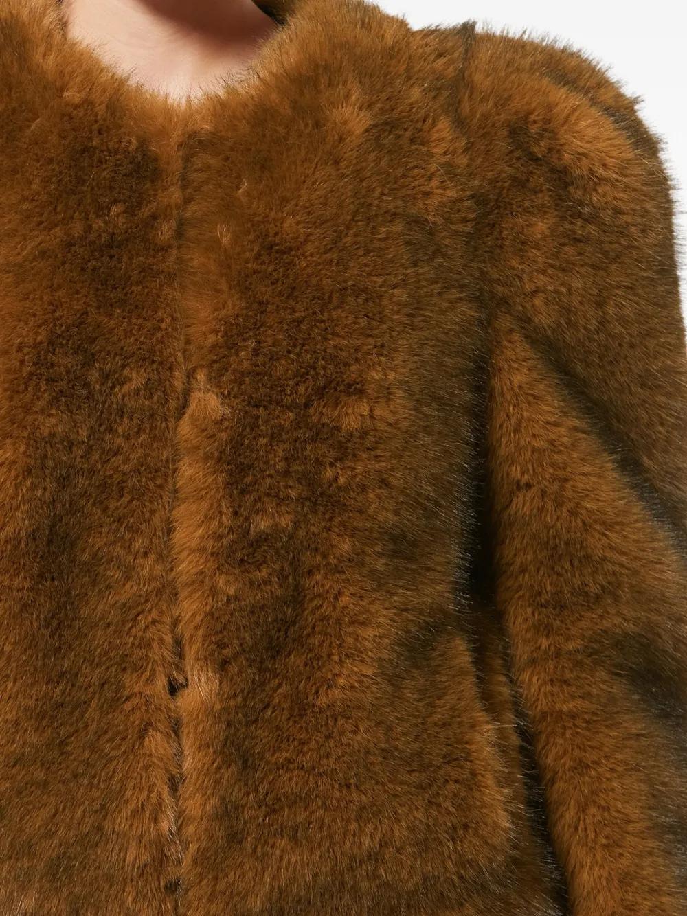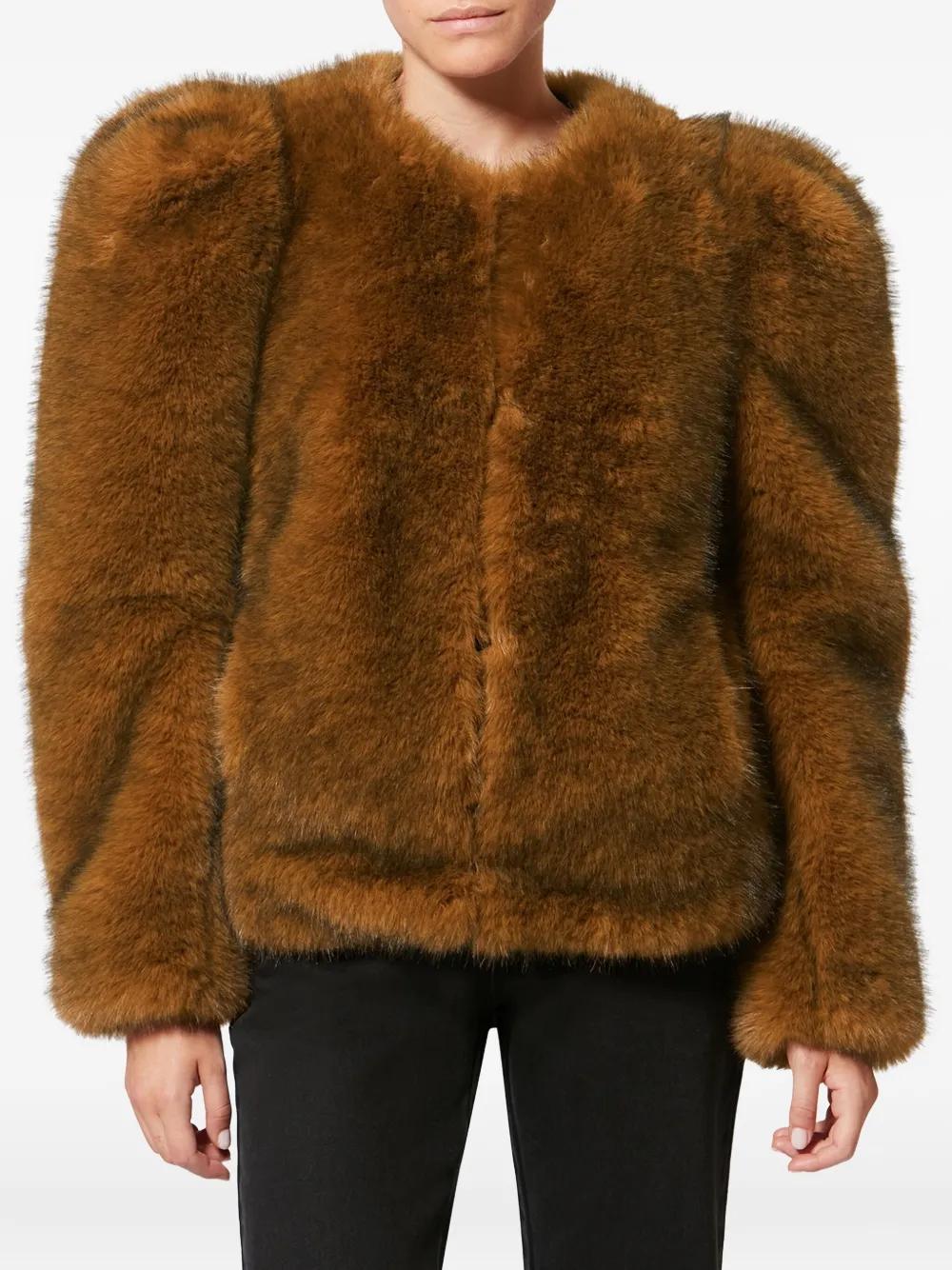 brown textured finish puffed shoulders round neck long sleeves front fastening
