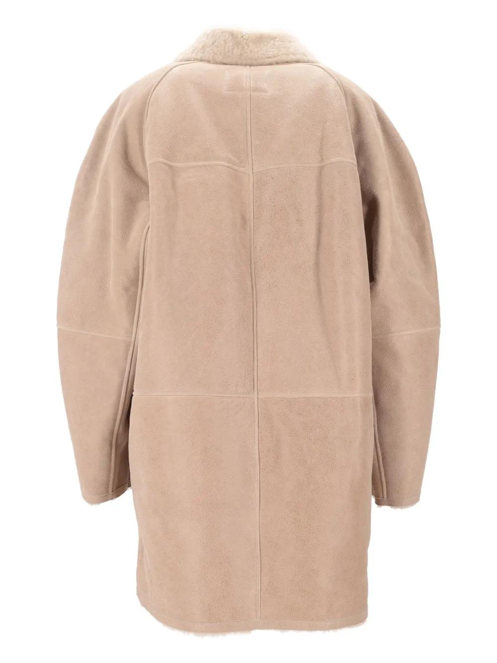 beige shearling trim button fastening front pocket panelled design long sleeves